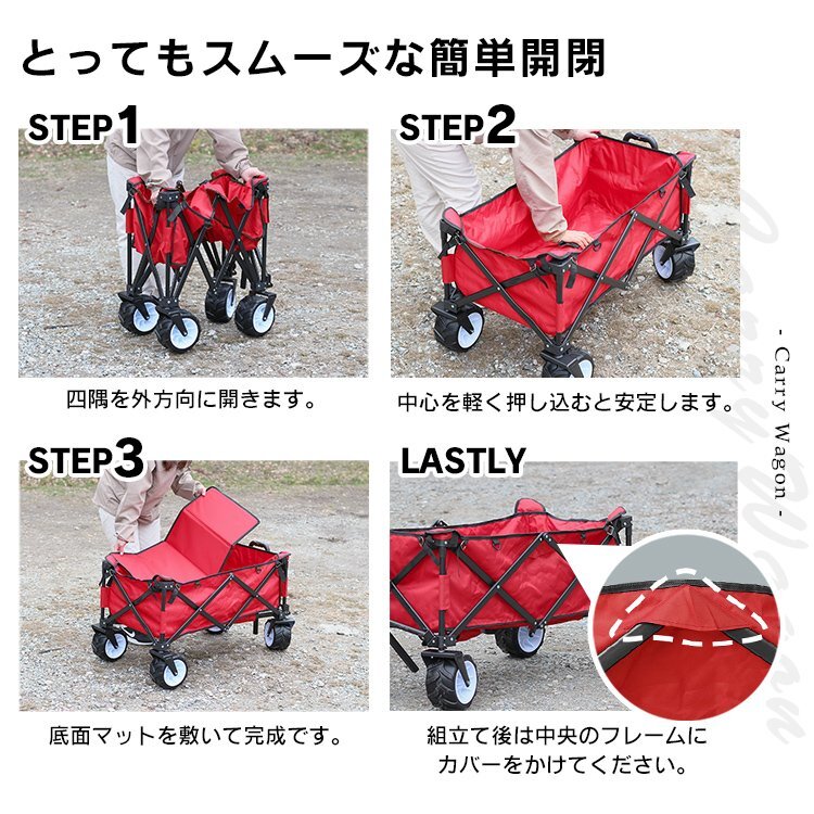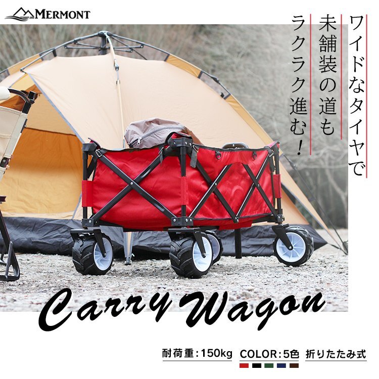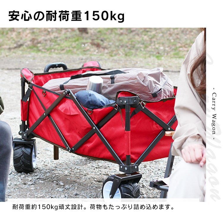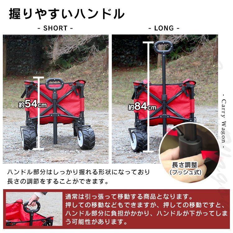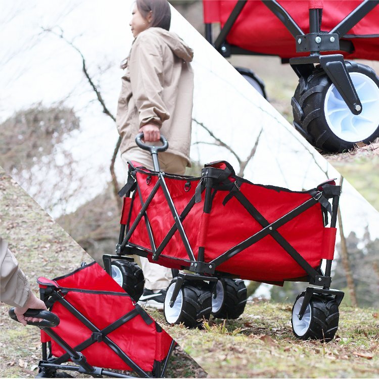 アウトドアでキャンプやバーベキューはもちろん、お買いものや運搬時にとても便利な大容量マルチキャリーキャリーカートです。 折りたたみ式でコンパクトに収納可能! 組み立て不要です♪ ・スポーツ用品の運搬に。 ・ガーデニング用として。 ・キャンプ用品(テント・タープ・テーブル・チェア)の運搬に。 あらゆるシーンで大活躍することに間違いなしです♪ 大型タイヤでスムーズ楽々移動。 また、折りたたみ式なのでコンパクトに変わり、持ち運びも簡単! レジャー時など車の中に入れて置くだけで、頼もしいアイテムです。 【商品仕様】 カラー:ブラウン サイズ(約): ・本体:幅100cm×奥行47cm×高さ78~104cm ・かごの寸法:幅75cm×奥行45cm×高さ27cm ・折りたたみ時 :幅47cm×奥行19.5cm×高さ78cm 本体重量(約):10kg 材質:スチール、ポリエチレン、ゴム他 耐荷重(約):150kg 【注意事項】 ※用途以外(イス・踏み台等)に使用しないで下さい。 ※ブレーキはありません。 ※ハンドルは必ず伸ばした状態で使用して下さい。 ▼カラーバリエーション 一覧▼ ■レッド ■ネイビー ■ブラウン ■グリーン ■ブラック |