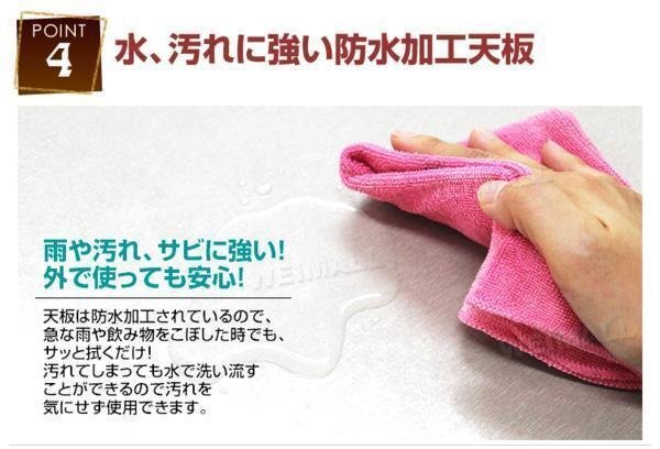 テーブルの中に椅子を収納することで、車のトランクに入れる時や持ち運びの時に便利です!! 組み立てはとっても簡単! 開いてロックするだけの簡単設置タイプなので女性一人でも気軽に組立てができます。 テーブルは2段階の高さ調節ができ、ローテーブルとしても使うことが可能です。 天板中心部にはパラソル用ホールがあるので、ベランダやテラスでの使用にもおススメです♪ キャンプ、バーベキュー、お花見などにとても便利! 【商品仕様】 ・折りたたみ式 ・テーブルサイズ(約):幅90×奥行62×高さ38/71cm ※高さ二段階調節 ・収納サイズ(約):幅90×奥行10×高さ31cm ・ベンチサイズ(約):幅86×奥行23×高さ38cm ・パラソル用ホール直径サイズ(約):26mm ・耐荷重(約):テーブル/30kg、ベンチ/70kg ・重量(約):8.3kg ・材質:アルミ、MDF(耐熱・耐水加工)、ポリエステル、スチール 【商品内容】 ・テーブル ×1 ・ベンチ ×2 【注意事項】 ・海外製品で、簡易梱包での輸入のため風防に擦れや多少の小キズなどがある場合がございますが、商品自体には問題ありませんのでご了承下さい。 ・商品は、モニターによって色合いが異なって見える場合があります。 ・仕様・デザインは改良のため予告なく変更することがあります。 【その他ラインナップ】 ・90cm(ベンチ付き) ・90cm(4色選択・ベンチなし) ・120cm(イス付き) ・120cm(4色選択・イスなし) ・135cm(BBQタイプ) ・180cm(4色選択・イスなし) ・240cm(4色選択・イスなし) |