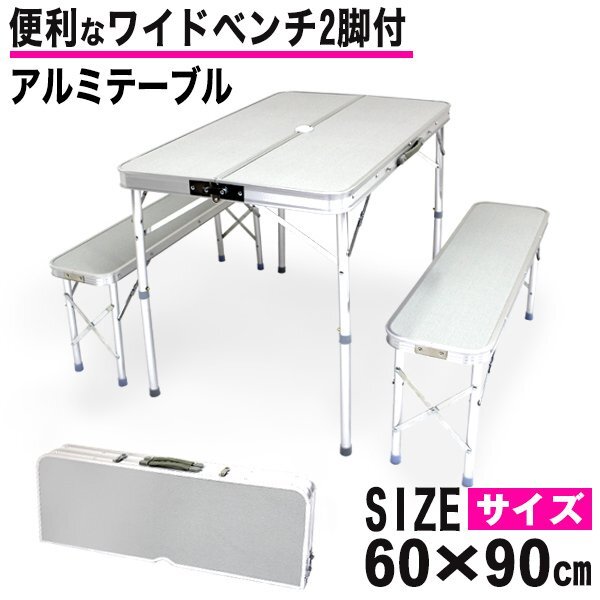 軽量アルミ製+取っ手付きで気軽に持ちだして、アウトドアやBBQにぴったりのテーブル&ベンチセットです。