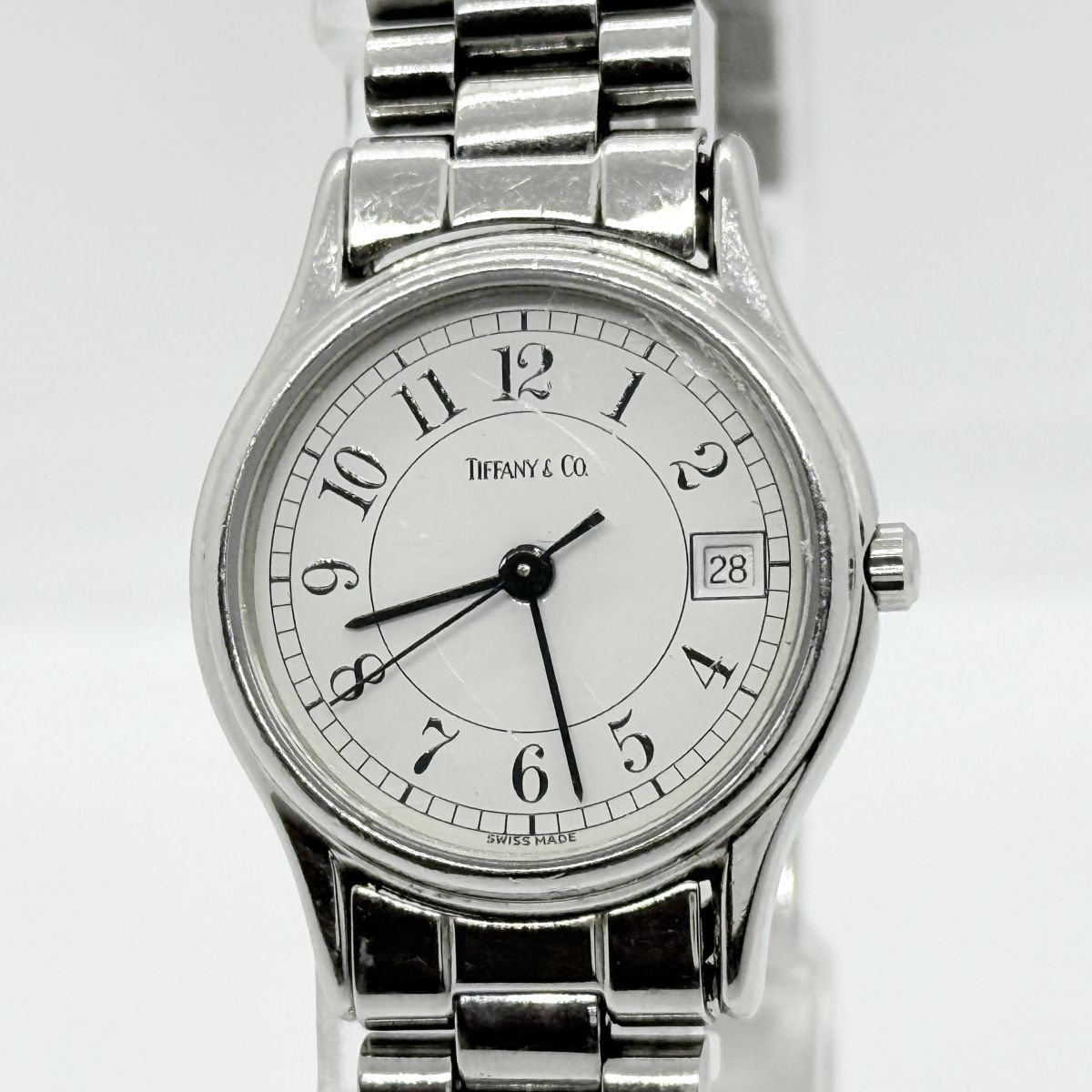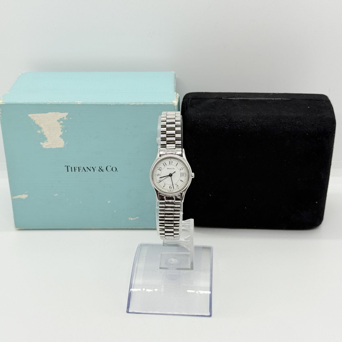 K8200 TIFFANY&Co. ティファニー ラウンドウォッチ クラシック デイト 白文字盤 SS QZ クオーツ 稼働品 腕時計 箱