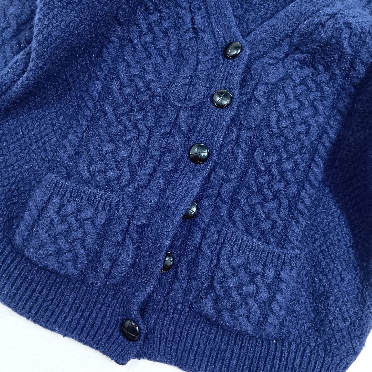 ●ボタンが留められません。また外れません。被りで着ることを前提にご検討ください。 ●重量あり ●Lサイズ表記ですが縮みを感じます。実寸参考にしてください。 ● アイルランド製 | ||||||