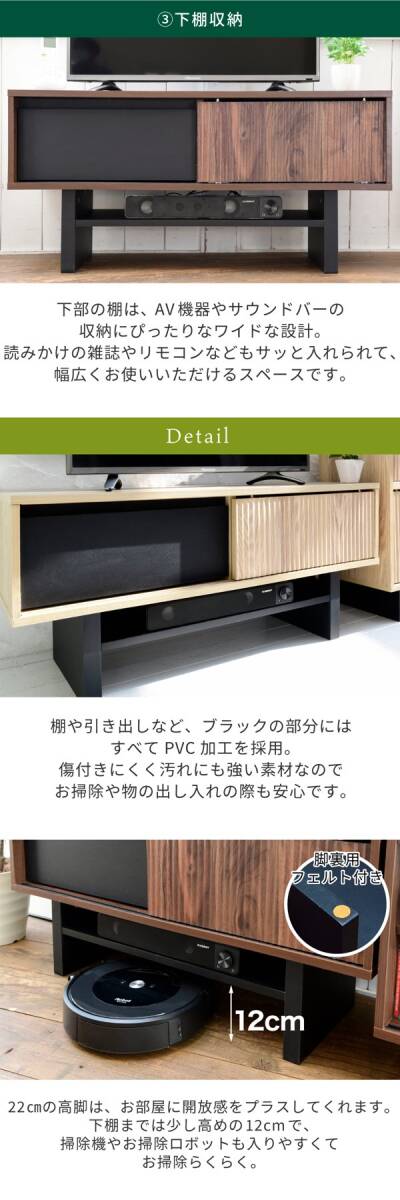 ※現在ご覧の商品ページはナチュラルxブラックのご購入ページとなります。 ヤフオクの仕様上単一ページに複数バリエーションを掲載することができませんので、他バリエーションが希望の場合は別ページでご購入お願い致します。 落ち着きのある和とモダンなテイストを組み合わせた和モダンシリーズ"Aalto"。 引き戸の波型が印象的な、収納力抜群のハイタイプテレビ台です。 ※撮影時の小物は付属しません。 配達業者を指定いただくことはできません。 沖縄・離島への配送は別途配送料が必要です。 ※別途送料が発生する場合は後ほどご連絡させていただきます。 タイミングによっては在庫切れの場合があります。