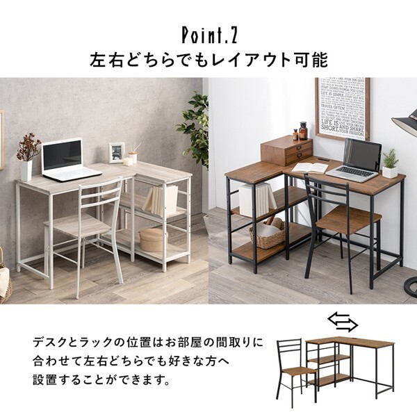 ※現在ご覧の商品ページはブラウンのご購入ページとなります。 ヤフオクの仕様上単一ページに複数バリエーションを掲載することができませんので、他バリエーションが希望の場合は別ページでご購入お願い致します。 デスク・チェア・3段ラックの3点セット。 デスクとラックは高さが同じなので広い作業スペースとして使ったり、別々にシリーズ家具としてコーディネートしたりとレイアウトを変えられます。 配達業者を指定いただくことはできません。 北海道/沖縄/離島のお届けに別途中継料金が発生します。 ※別途送料が発生する場合は後ほどご連絡させていただきます。 当店は正規店です。 タイミングによっては在庫切れの場合があります。