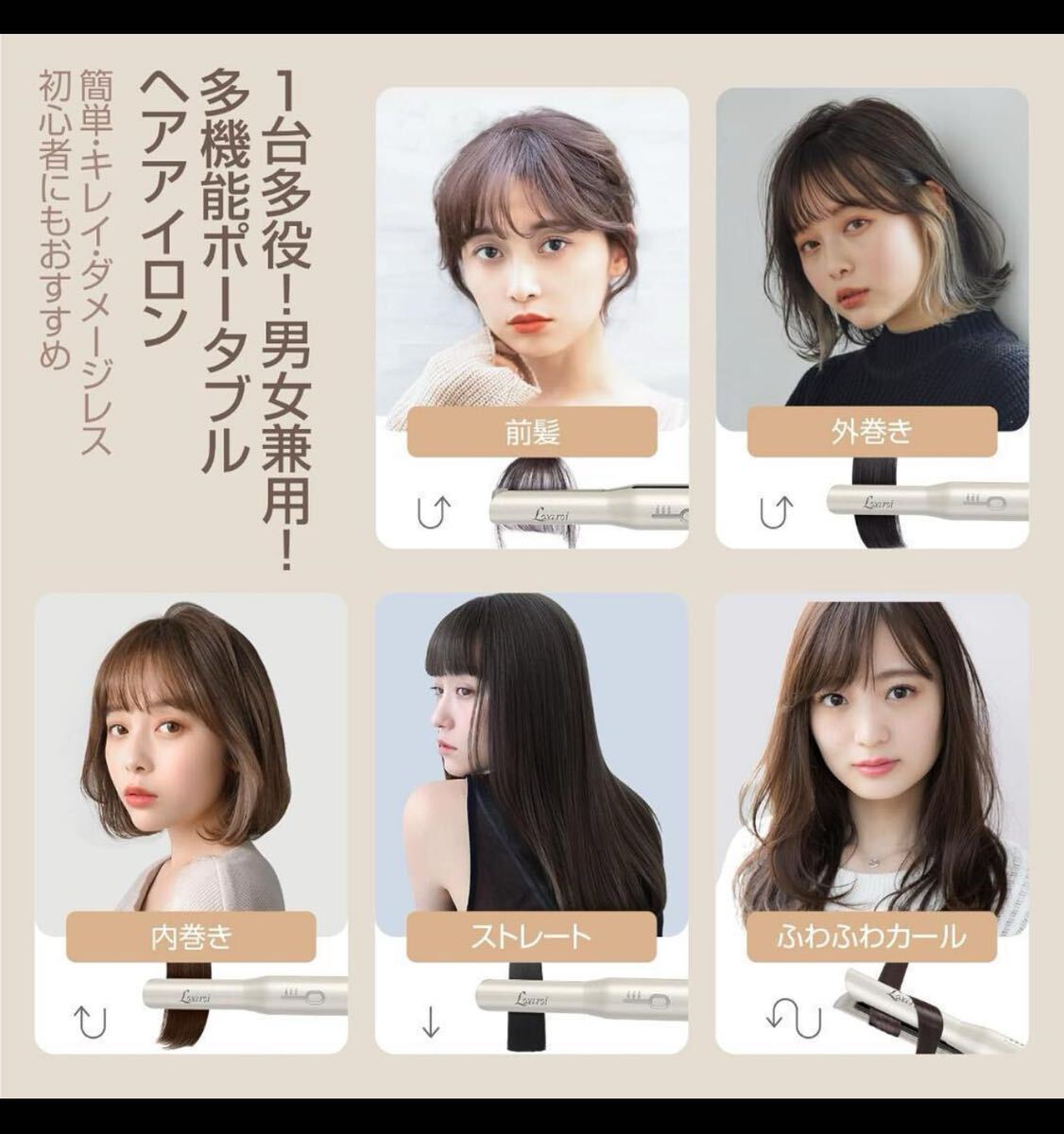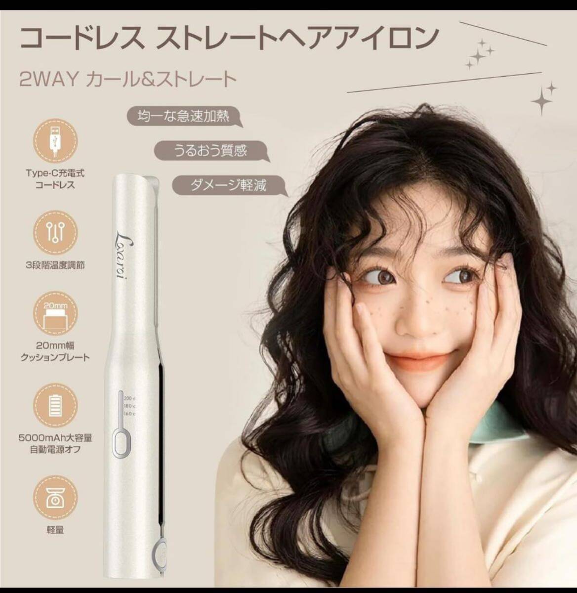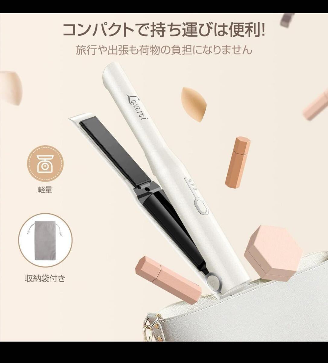 ヘアアイロン コードレス Lovaroi 2way カール&ストレート 3段階温度調整 ミニ USB充電式 自動OFF ロック機能 5000mAh 軽量 前髪 持ち運び便利 男女兼用 旅行/出張/家族/通勤に最適 収納袋付き(ホワイト)