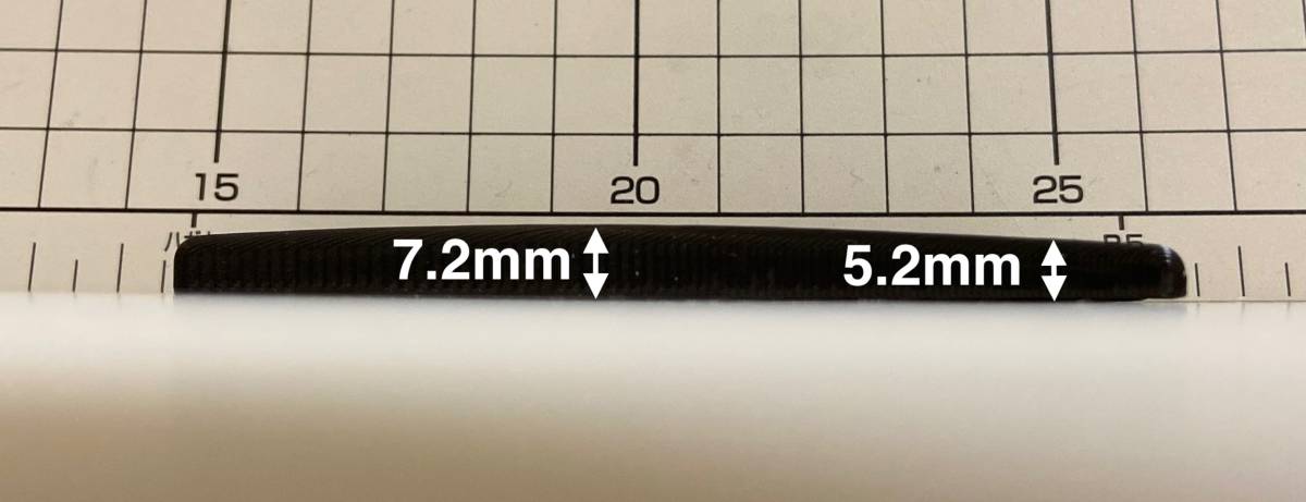 厚みが中央付近で7.2mm、1弦側で5.2mm