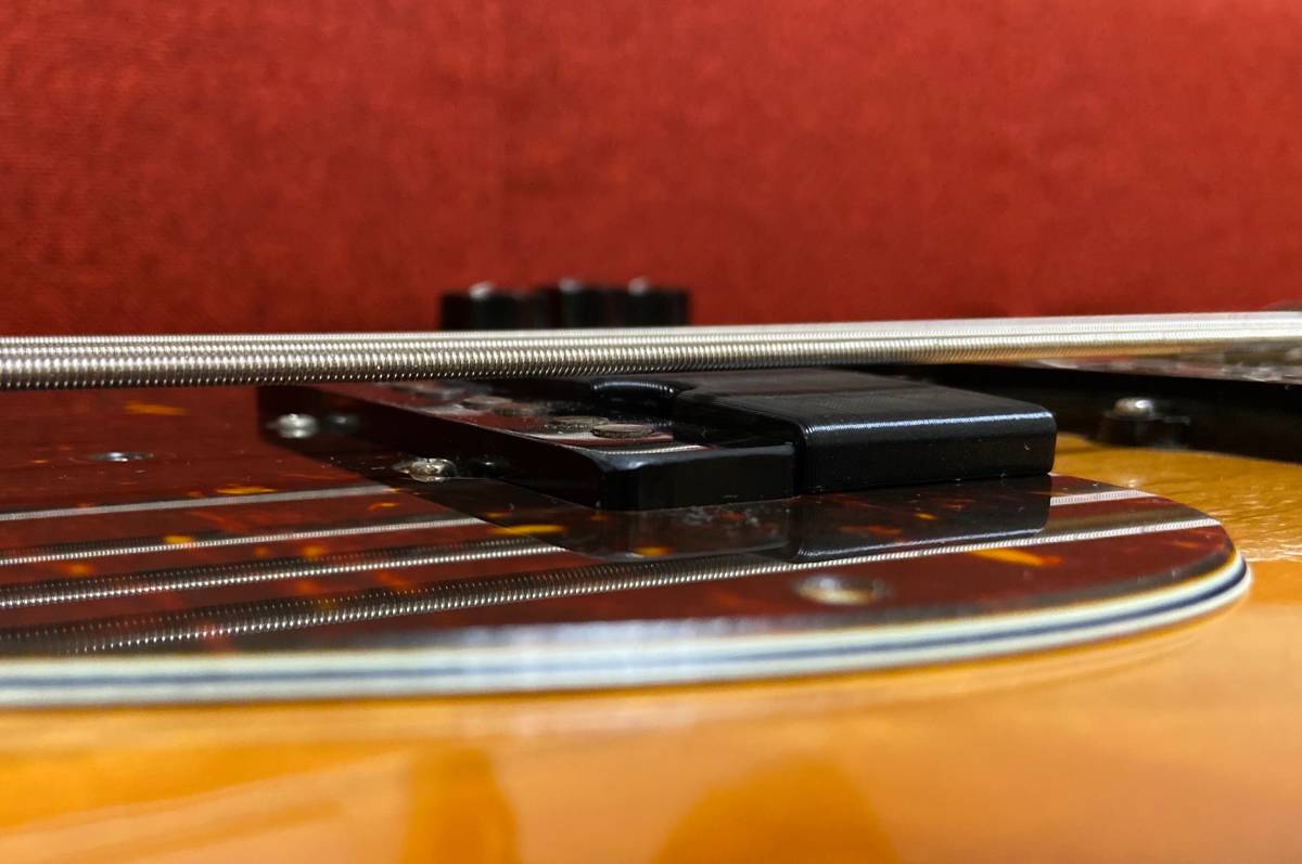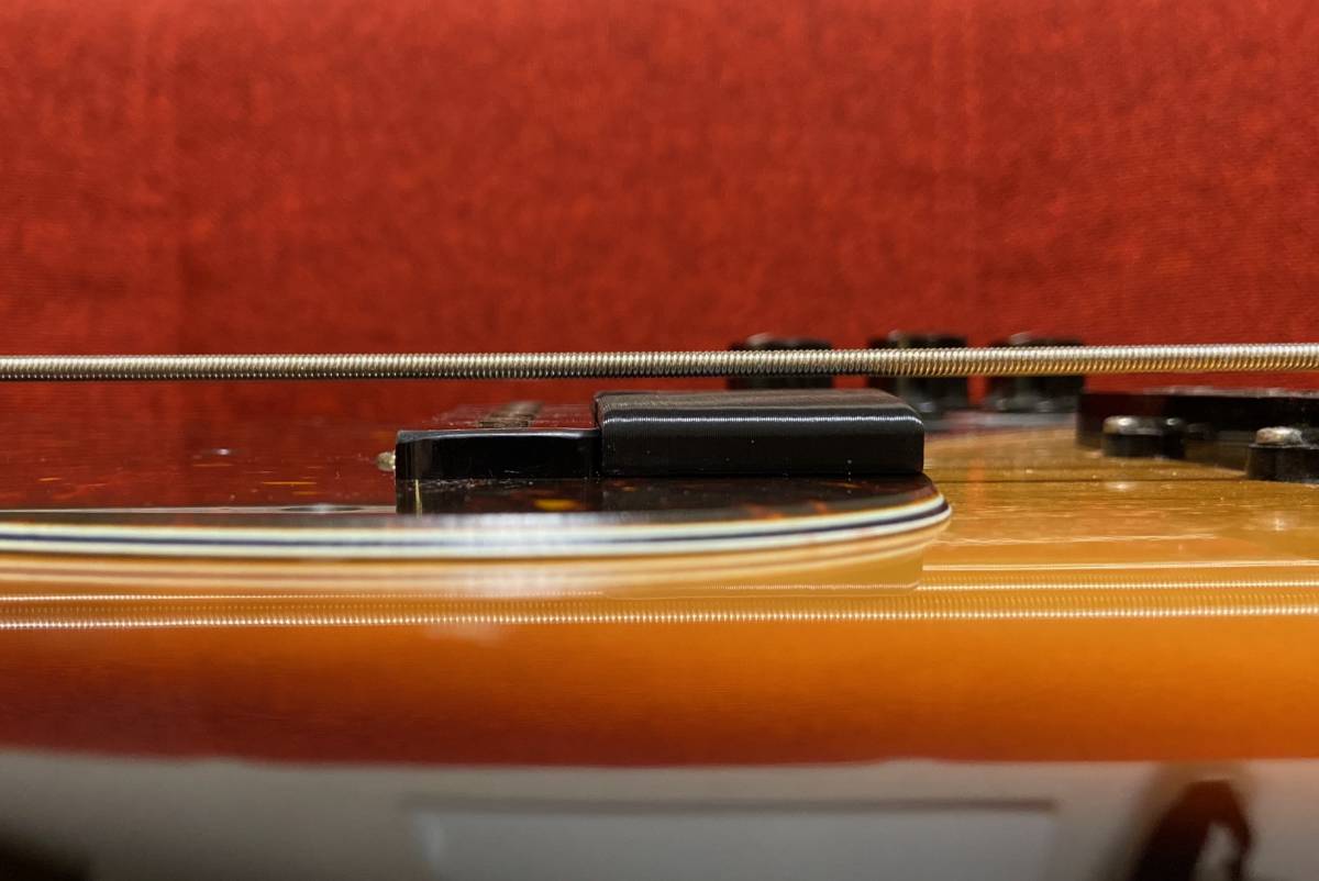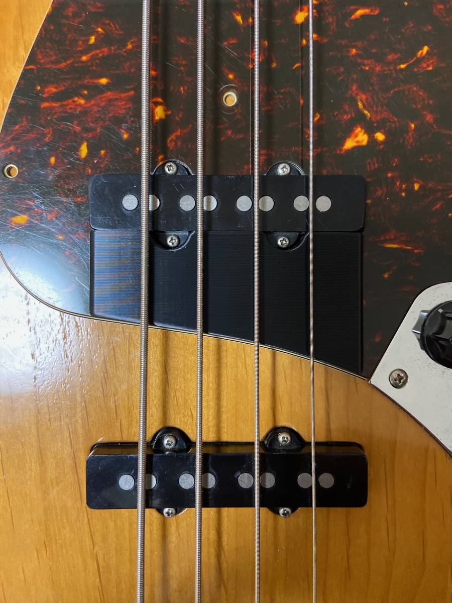 ジャズベースの雰囲気を損なわないようピックガードの上に収まるように小さくデザインしました。