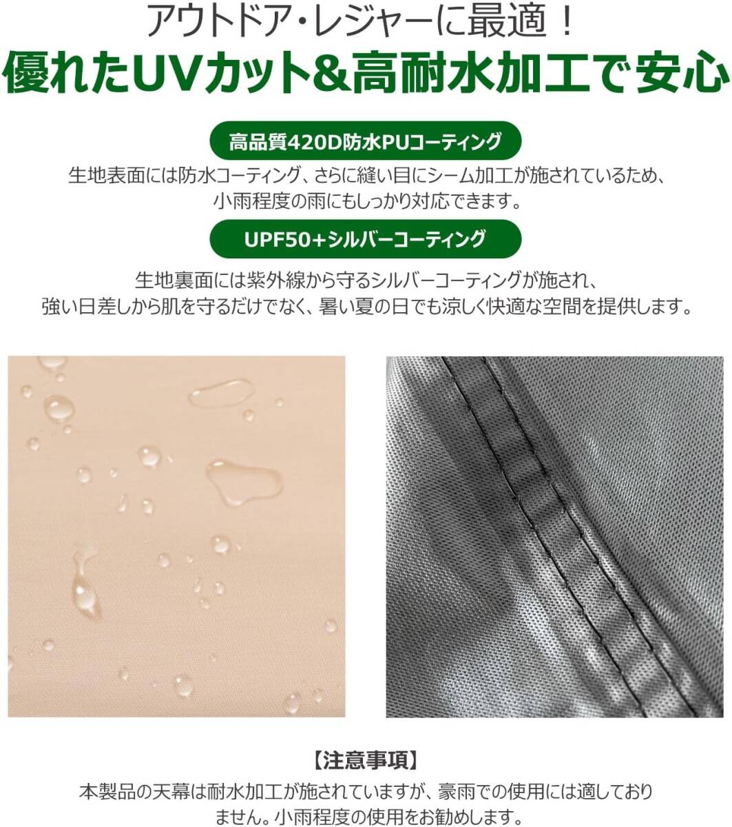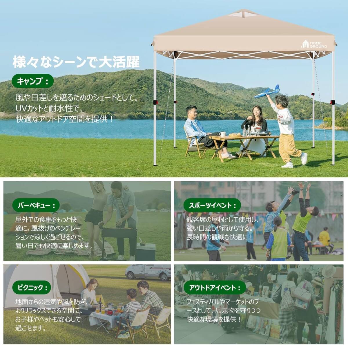 カーキ色 HomeGround ワンタッチ タープテント 3m×3m 【センターロック式】 組立て簡単!! 【高耐水PU+UVカットシルバー塗装】