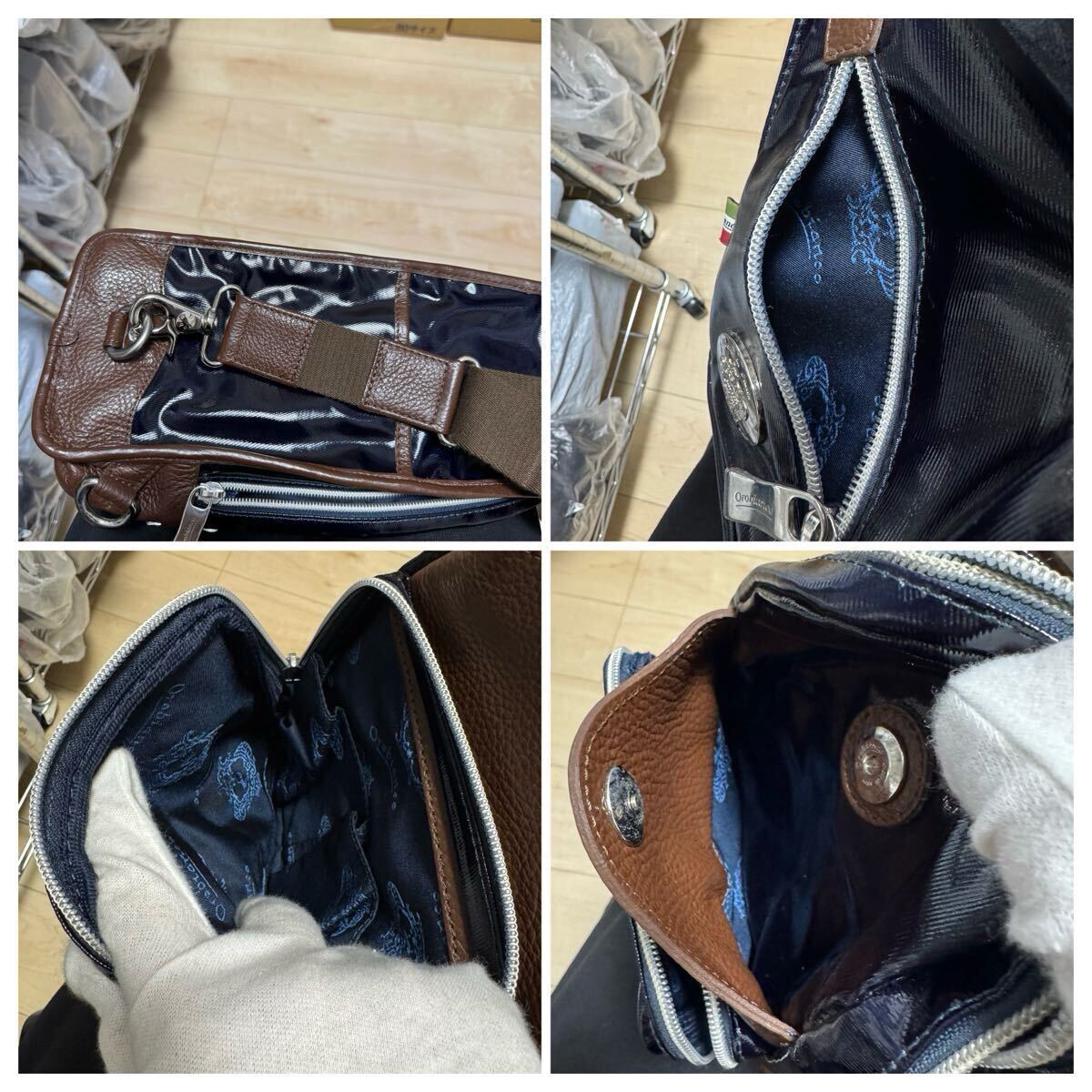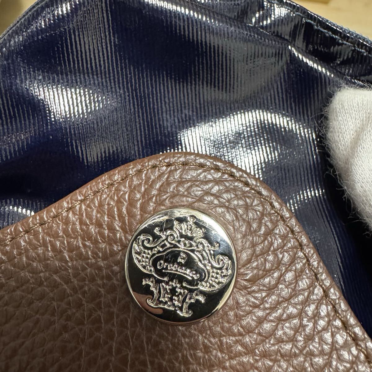 表面に薄いスレ(ぱっと見ではほぼ見えません)、内側のプレートに若干のくすみ、正面の金具に若干のスレがあります。(写真9、10枚目参照)