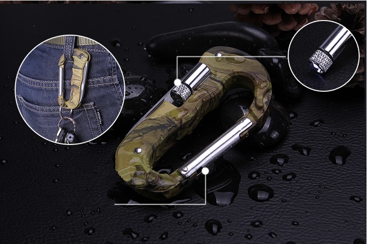 多目的 多機能 カラビナ 折りたたみナイフ マルチツール アウトドア キャンプ  LED付き 枯葉