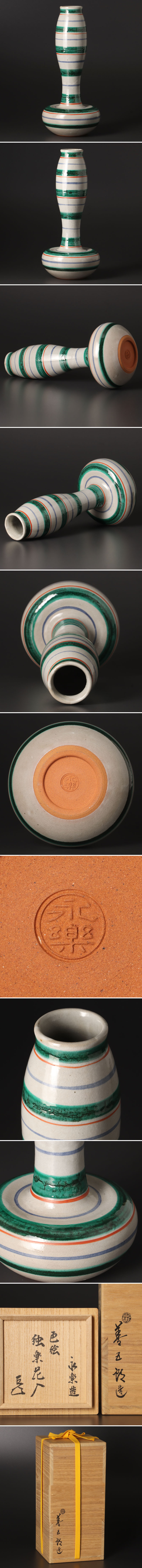 | 【古美味】十七代永楽善五郎(而全)造『而妙斎書付』色絵独楽花入 茶道具 保証品 |