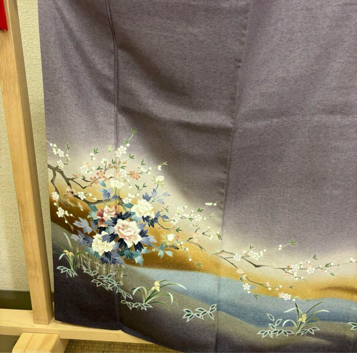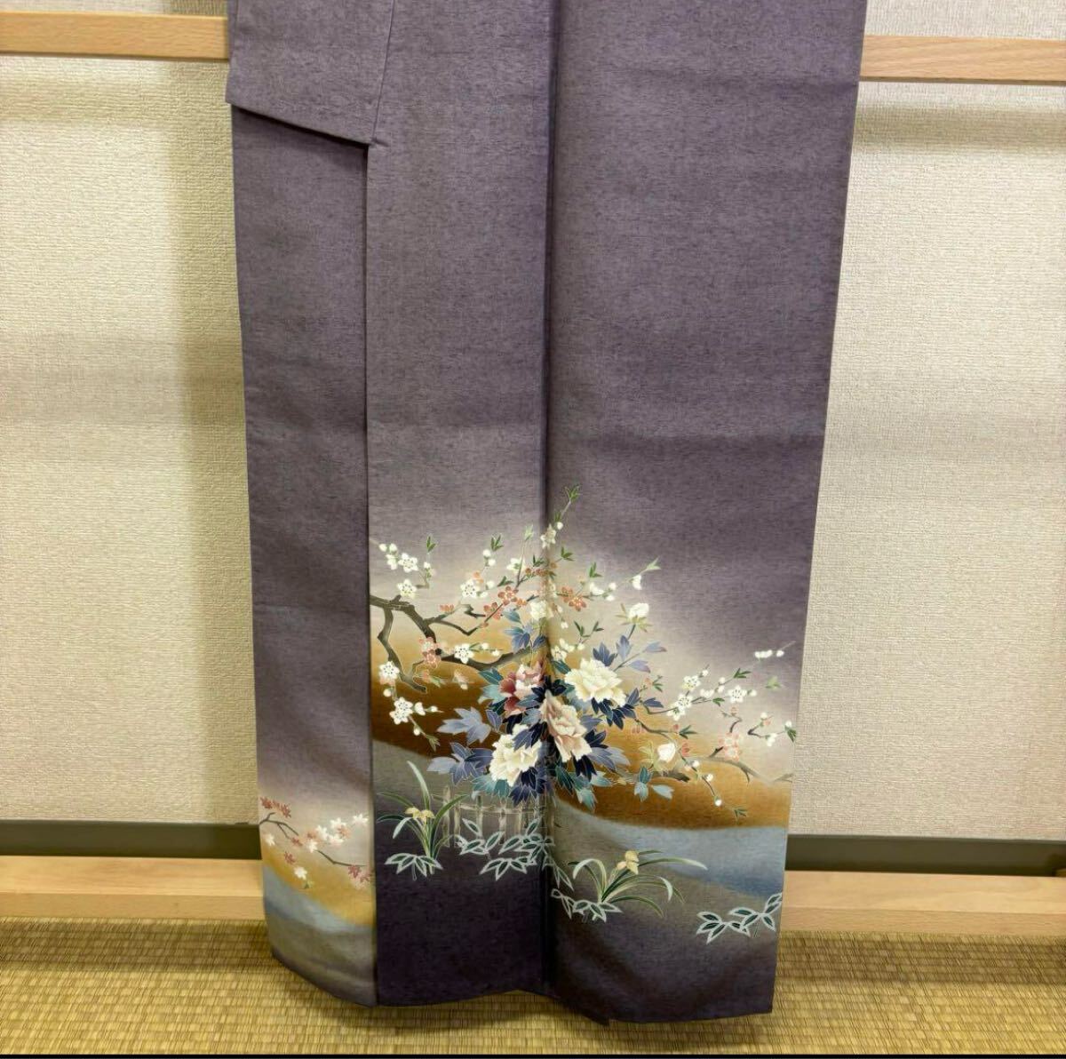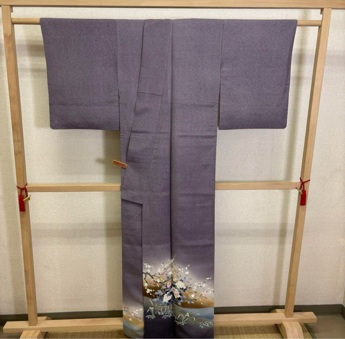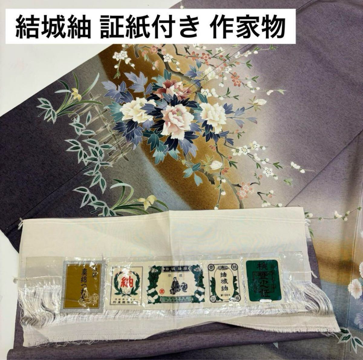 【楓】結城紬 証紙付き 作家物 友禅 一つ紋 付下げ 訪問着 袷 正絹 KKk-5089
