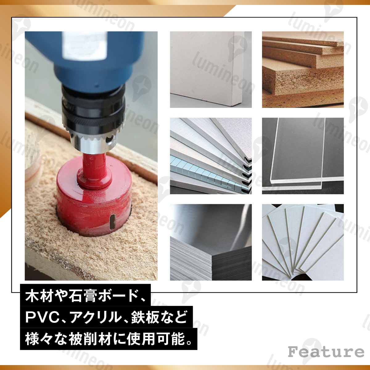 ■鉄板,アルミ板,石膏ボード,木材,など様々な穴あけに使用可能でDIYにも最適!