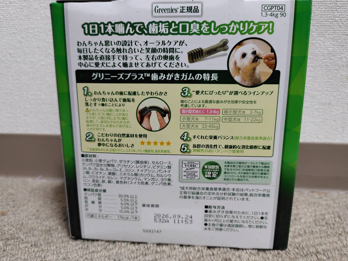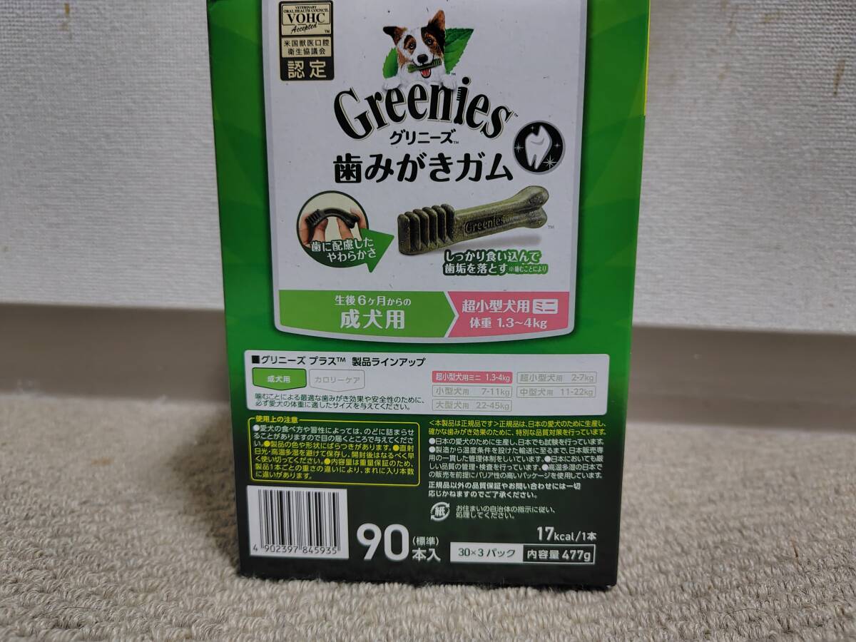 【未開封・送料無料】グリニーズプラス 歯みがきガム 成犬用 超小型犬用 ミニ 90本 体重1.3-4kg