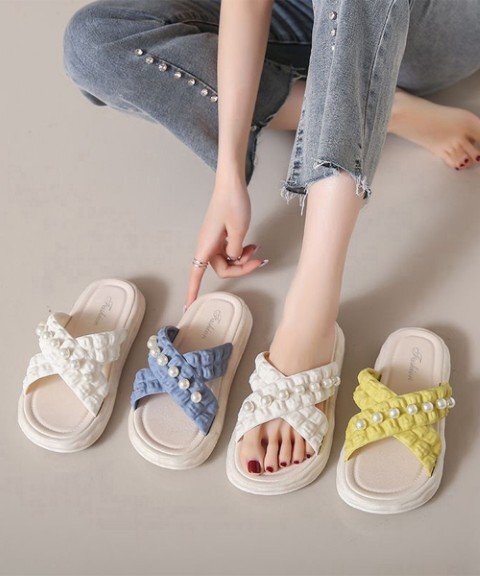 甲ベルトに大きめのパールが飾られ、可愛くておしゃれ度満点のサンダル
