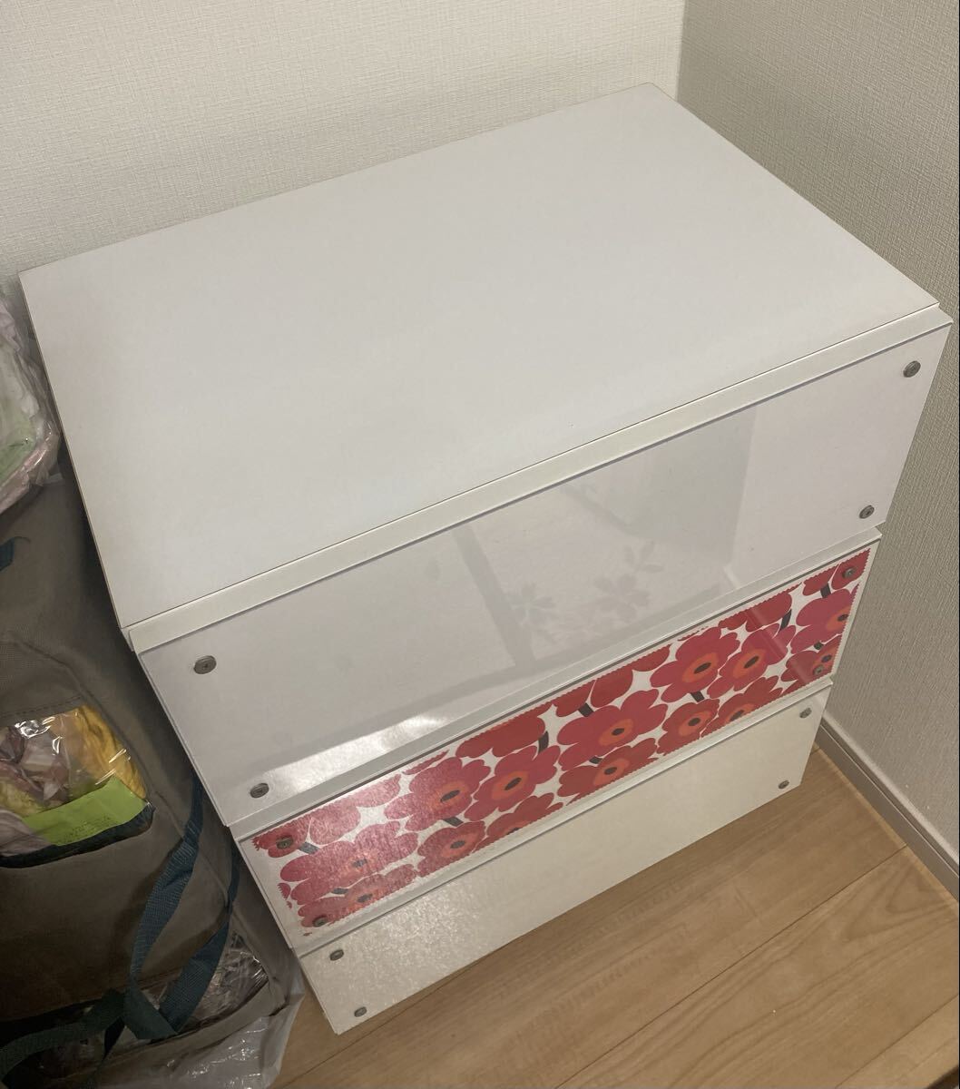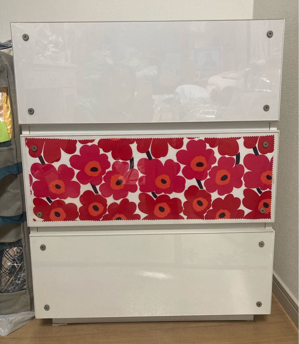 【送料要確認】着せ替えパネル 引き出し幅60㎝ 3段 ホワイト姫系家具 マリメッコ生地おまけ 平成レトロ チェスト たんす 白