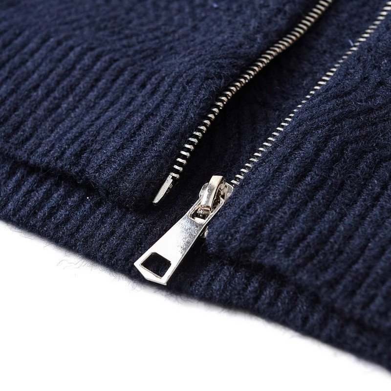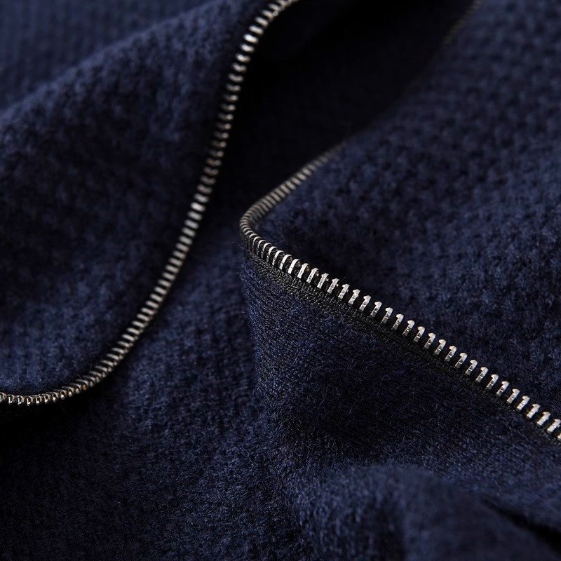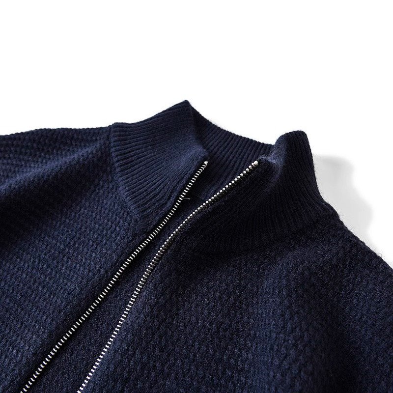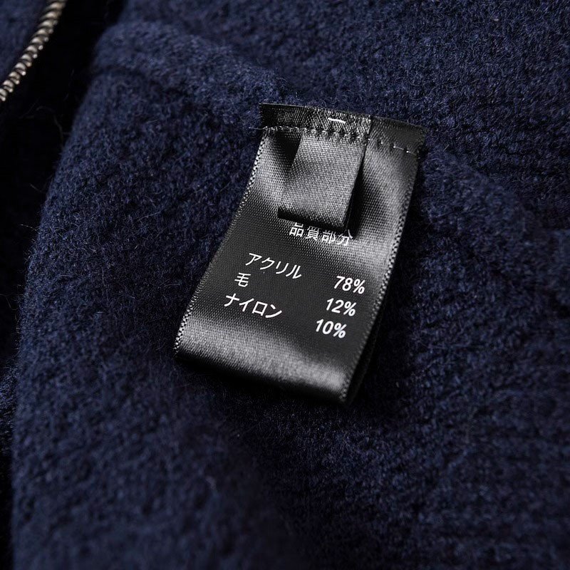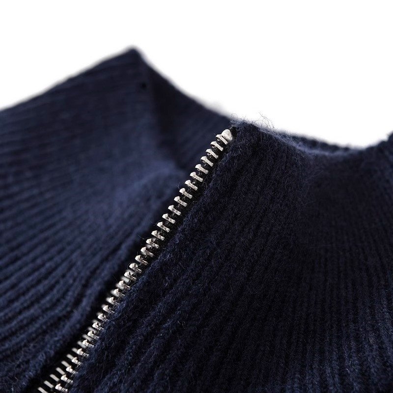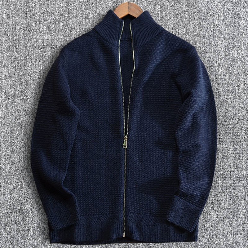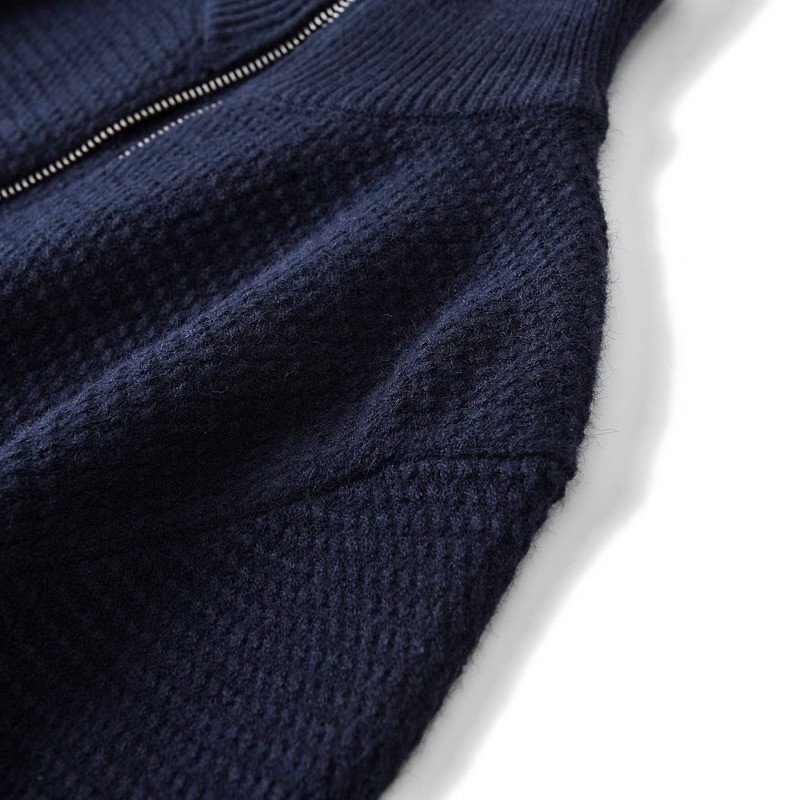 新品 ウール混 ニット ジャケット カーディガン メンズ 暖かさ 立ち襟 秋冬 柔らかい アウター ジップアップ セーター 濃紺 T7028-XL