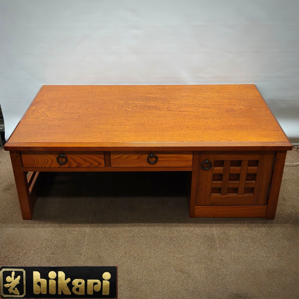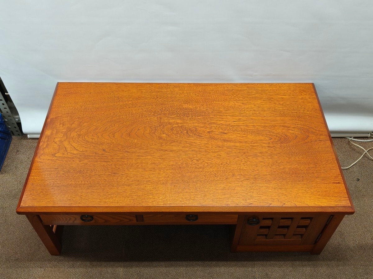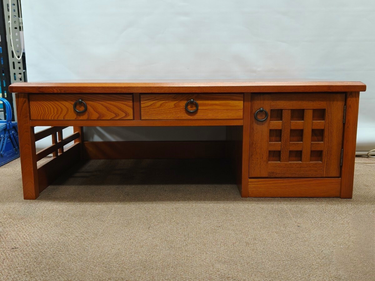 hikari 光家具 欅 ケヤキ杢 文机 座机 片袖 和家具 古民家 机 レトロ 勉強机 作業机 引き出し (10267H