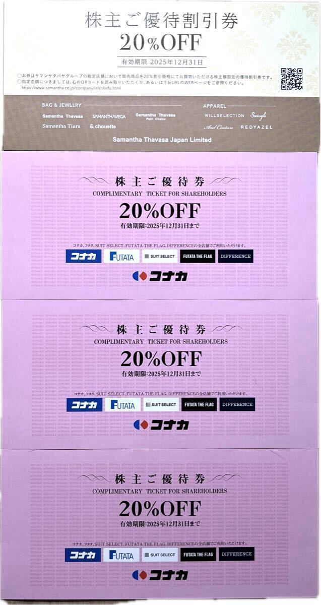 商品名 :コナカ株主優待券×3枚,サマンサタバサ優待割引券×1枚