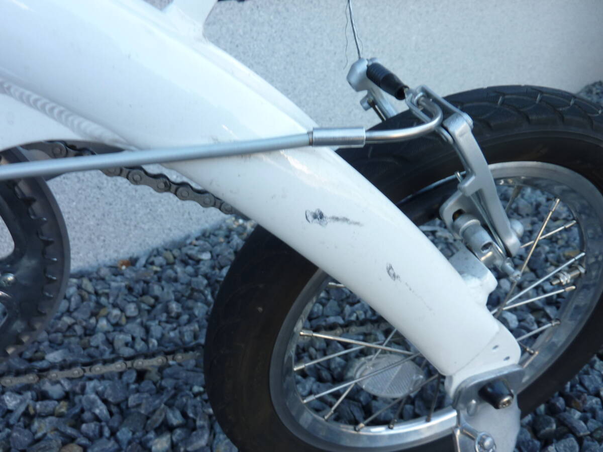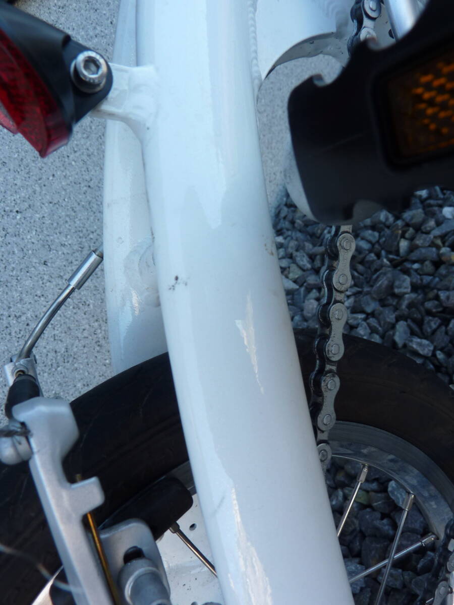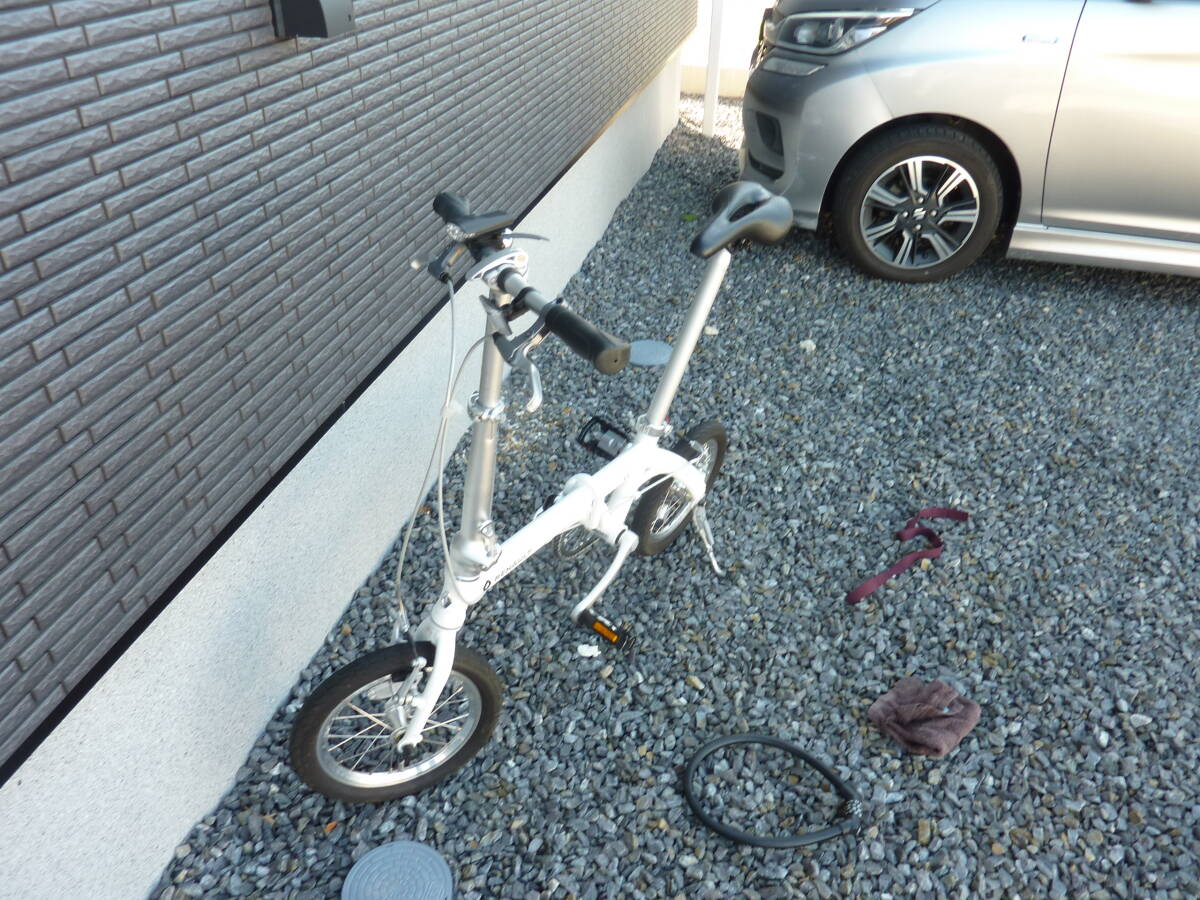 取りに来られる方、愛知県高浜市。 軽量アルミフレーム 14インチ コンパクト折りたたみ自転車 本体重量8.3k。ペダルは折り畳み式に取り換えてあります。傷が有りますがあまり乗っていません。