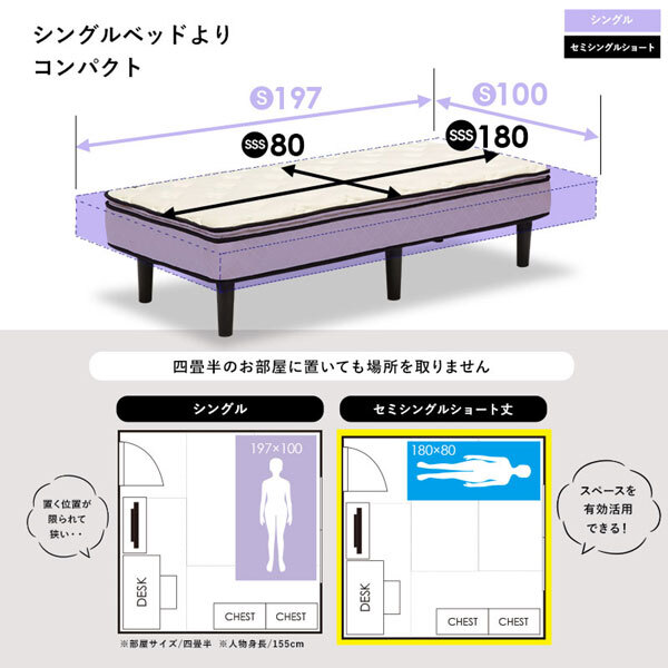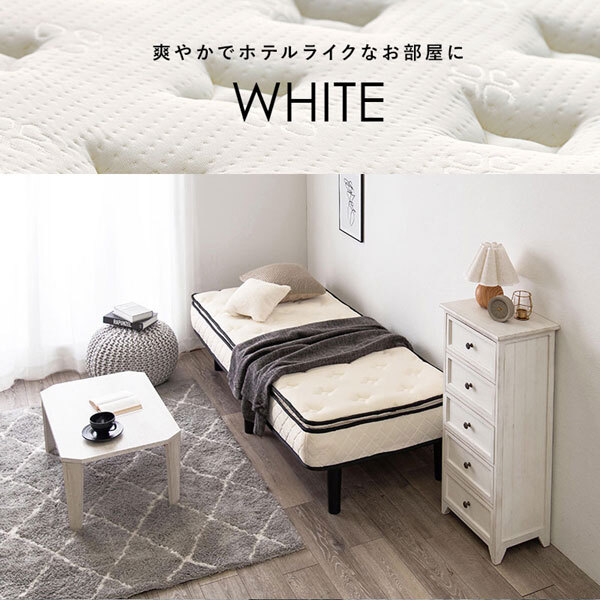 マットレス付ベッド ピロートップ仕様 セミシングルショートサイズ ホワイト色 ポケットコイル すのこフレームマットレス+ピロートップ+すのこフレームを組み合わせたマットレス付きのベッドです。マットレスは贅沢な寝心地をつくるピロートップ仕様。表面はふかふかで中からも身体をしっかりと支えます。通常のシングルサイズより一回り小さいサイズ。コンパクトなので狭いお部屋やお子様のベッドにもおすすめです。表面には高級マットレスに使用されるニット生地を採用。伸縮性に優れているので寝返りの時も体に優しくフィットします。耐久性を上げるエッジサポート。丈夫なすのこフレームは耐久性と通気性に優れ、清潔な状態を保ちます。ベッドの脚は高さ20cm。ベッド下は収納スペースとしてお使いいただけます。マットレスは圧縮した状態でお届けするので玄関からの搬入もラクラク。※開封後、完全に復元するまで数日かかります◇サイズ:幅80×奥行180×高さ46センチ◇床面サイズ:幅80×長さ180センチ◇主材:積層材◇張地:ポリエステル(マットレス)◇脚部:プラスチック◇ポケットコイル使用◇組立式◇耐荷重:120kg☆落札、ご入金確認後 1~2日にて発送いたします 追加納期のかかるものは商品ページに記載いたしております よろしくお願いいたします。
