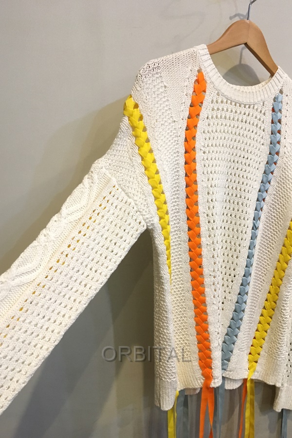 Maje マージュ 未使用訳有 ローゲージ リボンニット セーター ホワイト レディース F ※薄いシミ