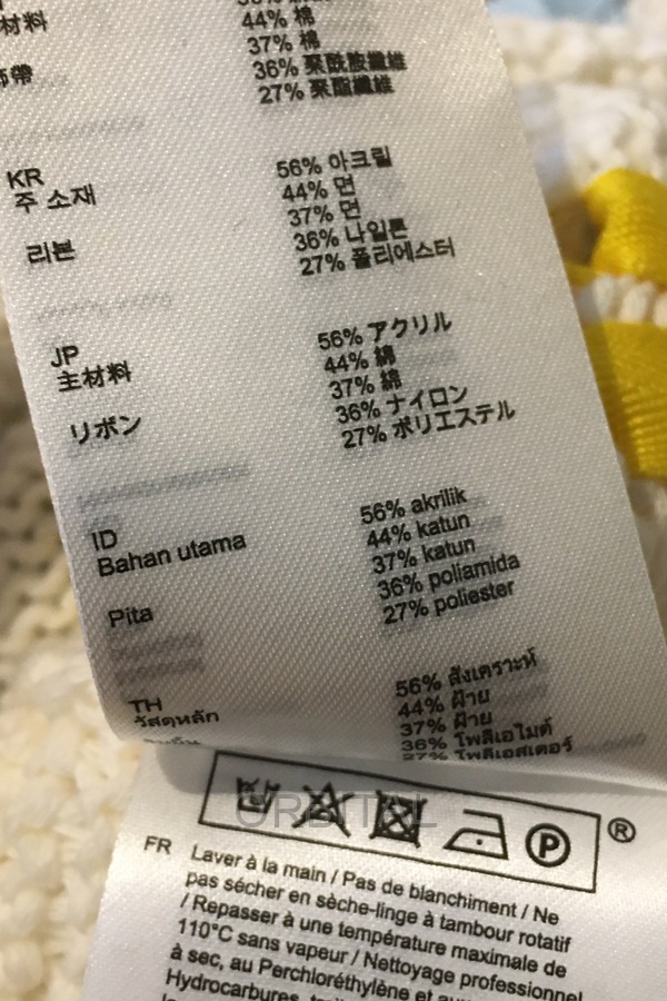 本体:アクリル56%、綿44% リボン:綿37%、ナイロン36%、ポリエステル27%