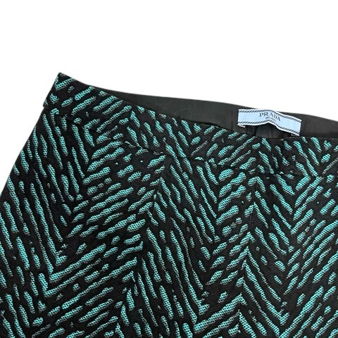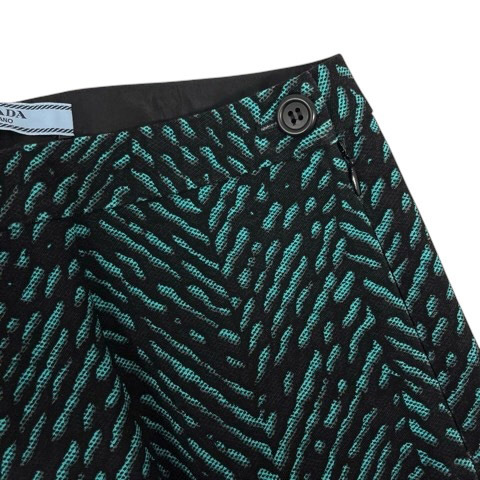 プラダ PRADA パンツ ボトムス スラックス ウール混 ストレッチ 総柄 40 青 ブルー 黒 ブラック レディース