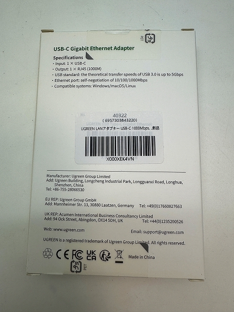 | 商品説明 | 商品説明 ☆★UGREEN 有線LANアダプター 1000Mbps USB3.0★☆ USB-C 3.0 ギガビットイーサネット 最大1000Mbps サイズ:長さ6.1 x 幅2.3 x 高さ1.3 cm 重さ:36g ケーブル長さ:20cm 11/10/8.1/ 8、mac OS、iPad OS、ChromeOS、Android Windows XP/7/Vista/Linuxはドライバーをインストール要 主にiphone、ipadにて使用。 不要になりましたので出品します。 |