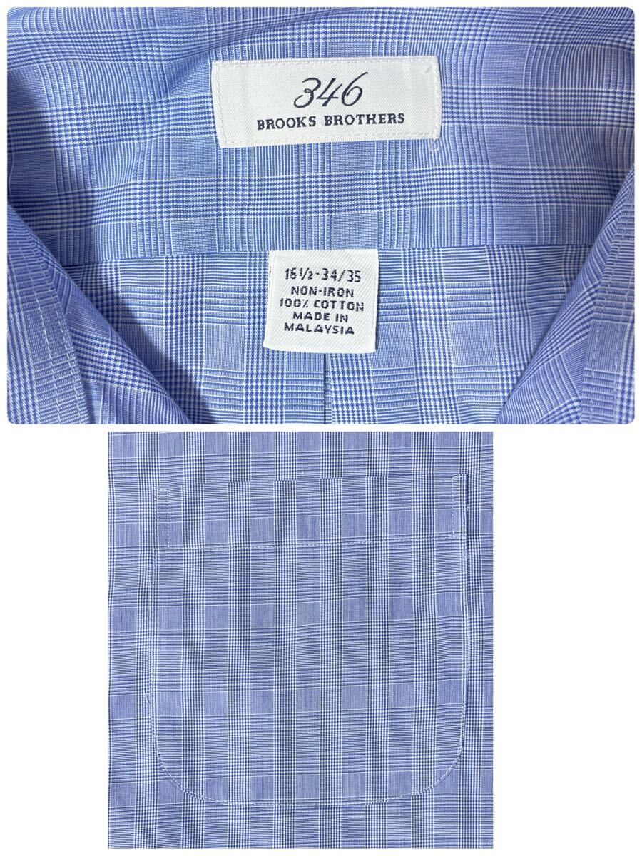 Brooks Brothers 346 長袖シャツ ブルー系チェック 16 1/2-34/35 ●洗濯プレス済●ネコポス可● ブルックスブラザーズ シャツ 青 古着/746