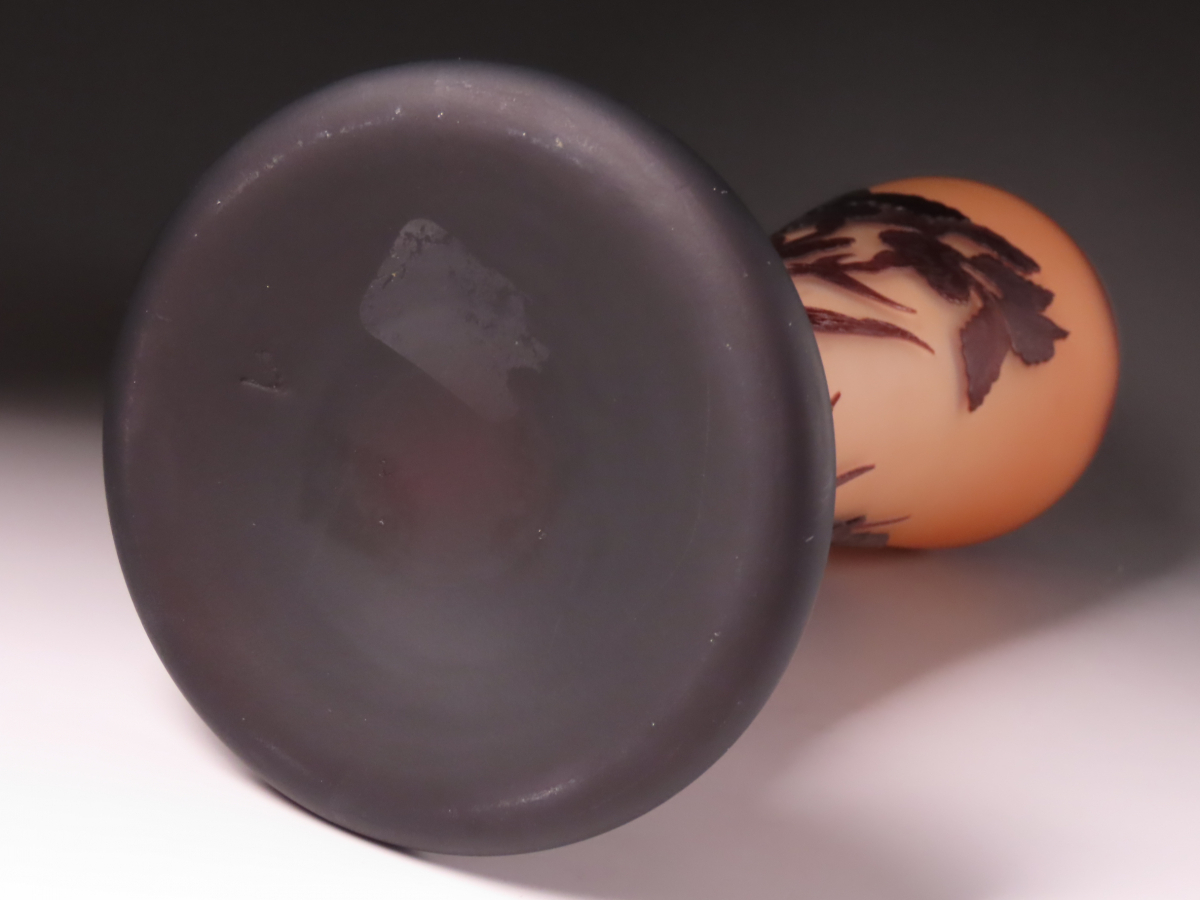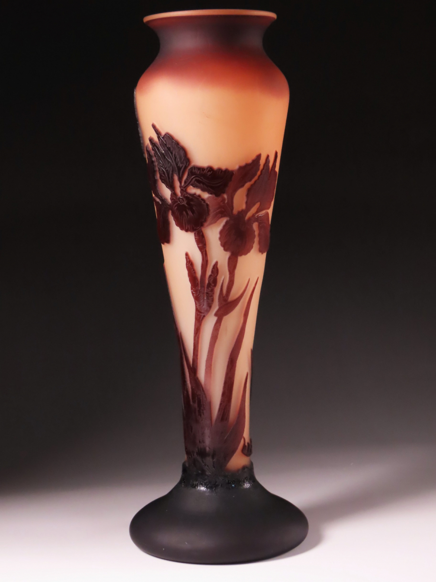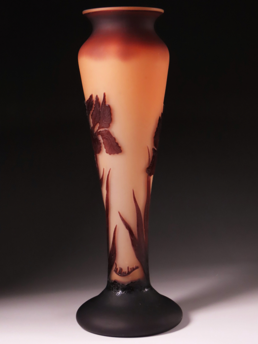 【ONE'S】エミール・ガレを彷彿とさせる圧巻の造形美 在銘 多層被せガラス 菖蒲花蝶文花瓶 フラワーベース 飾壷 高35.8cm 西洋美術 | |||