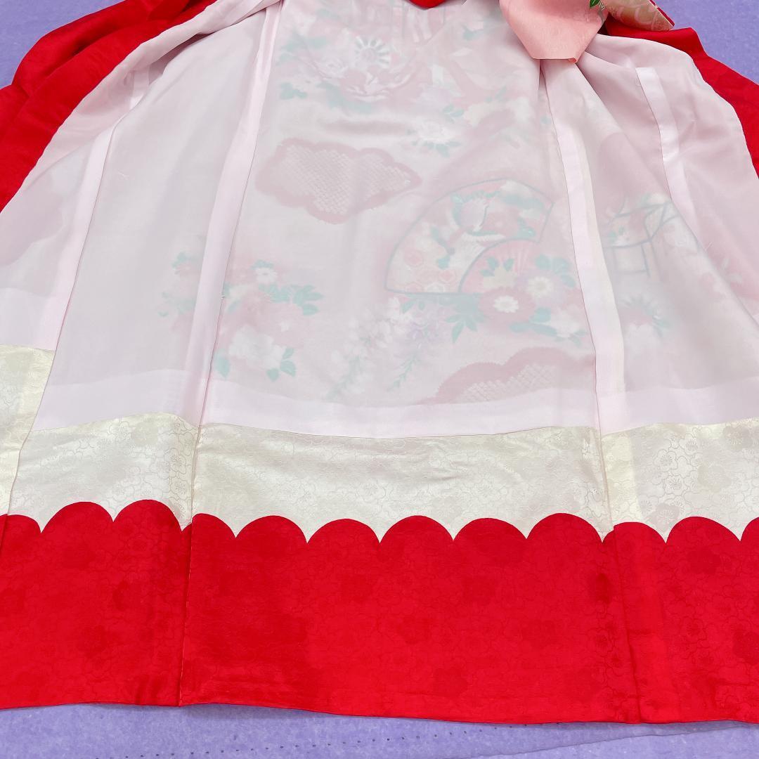 襦袢は、淡いピンク色で、赤い飾り袖が付いています。