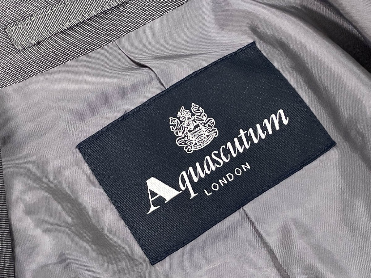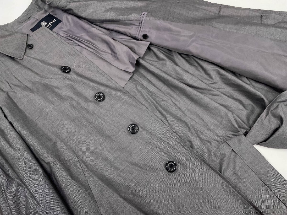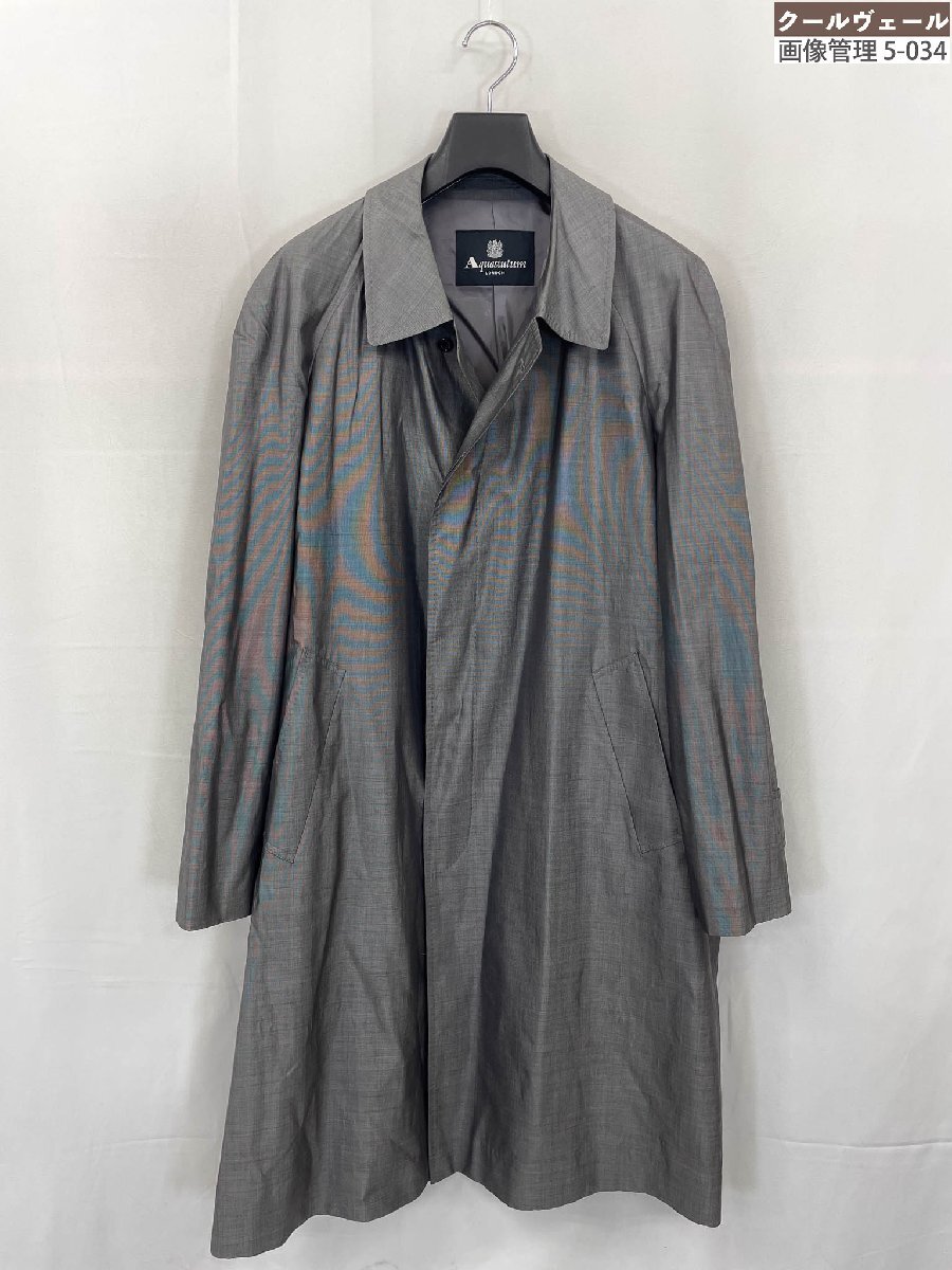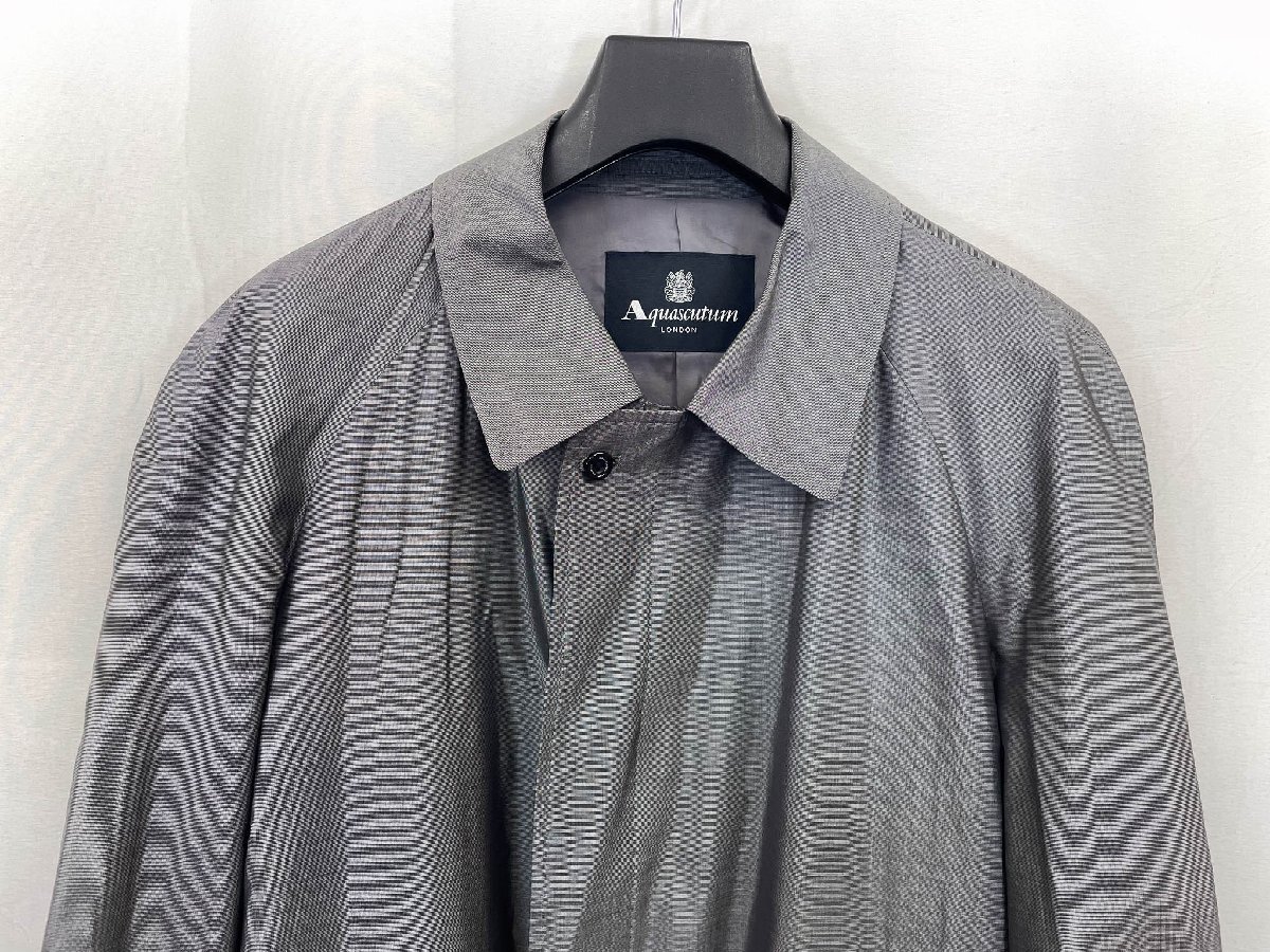 美品【Aquascutum アクアスキュータム】シルク100% ステンカラーコート 比翼ボタン (メンズ) size40 ミディアムグレー 織柄 ◇32MW4099◇