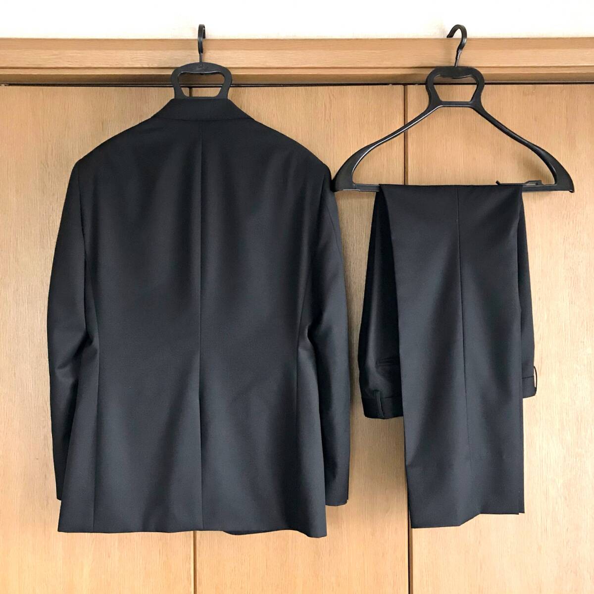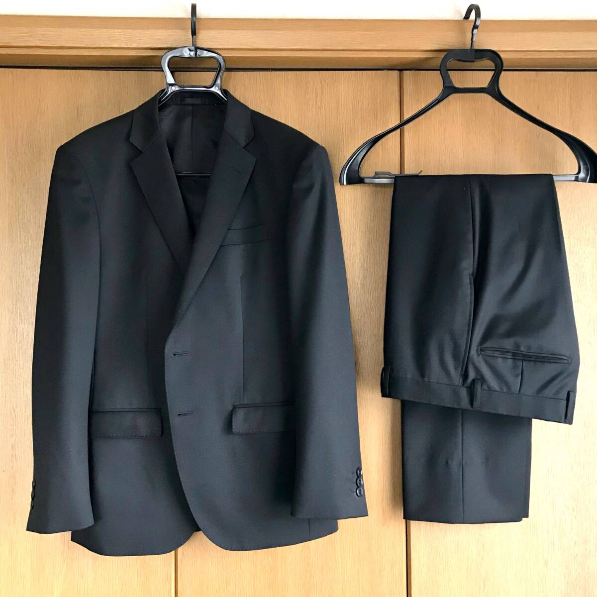 スラックスはノータック、ストレート、シングルです(股下75cm、裾幅21cm。)
