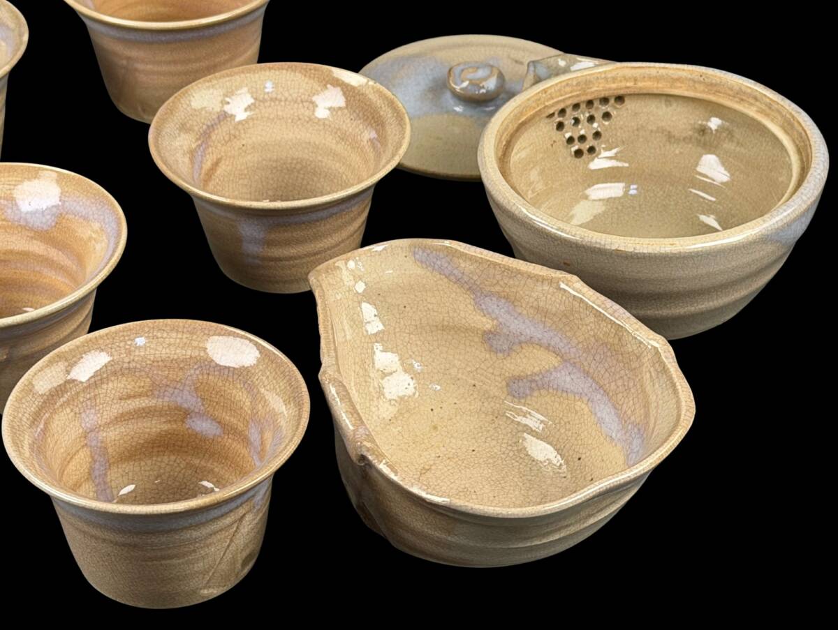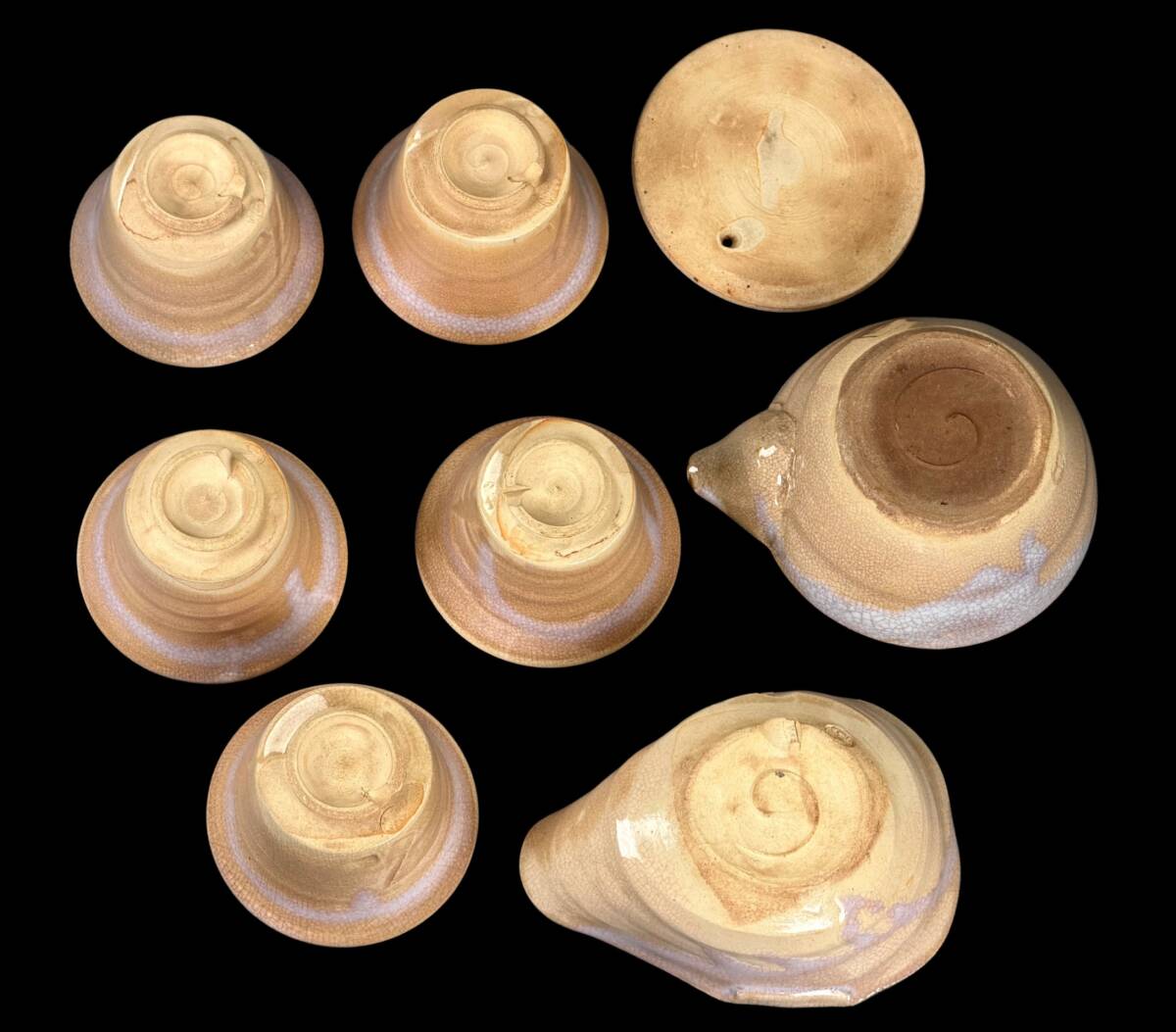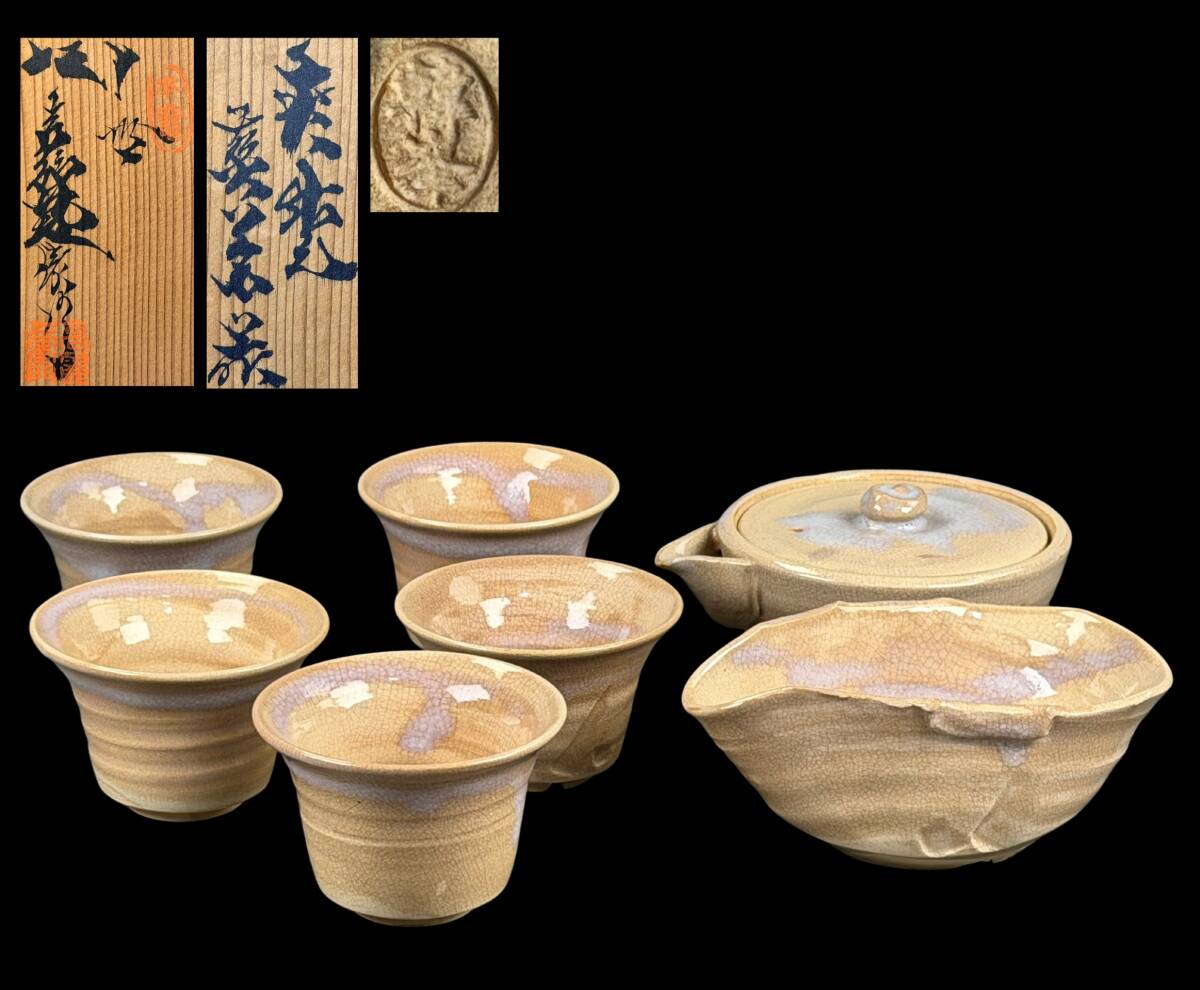 【忠古堂】十代 坂高麗左衛門(韓峯) 萩焼 煎茶器揃い 急須 宝瓶 湯冷まし 煎茶碗5客 共箱 即決 m-142