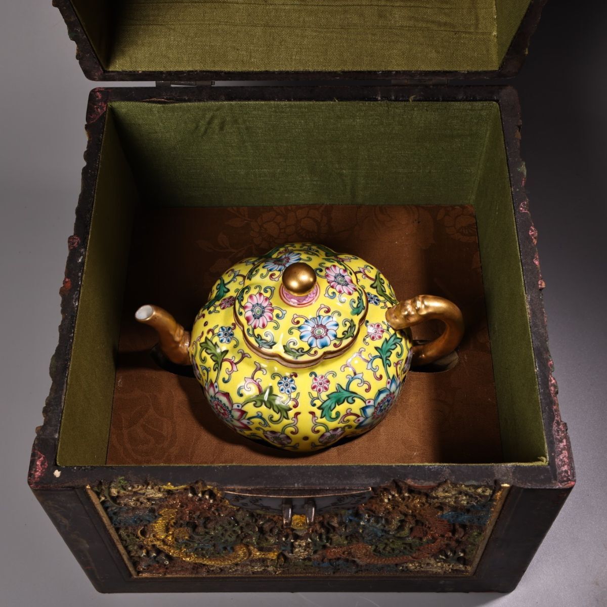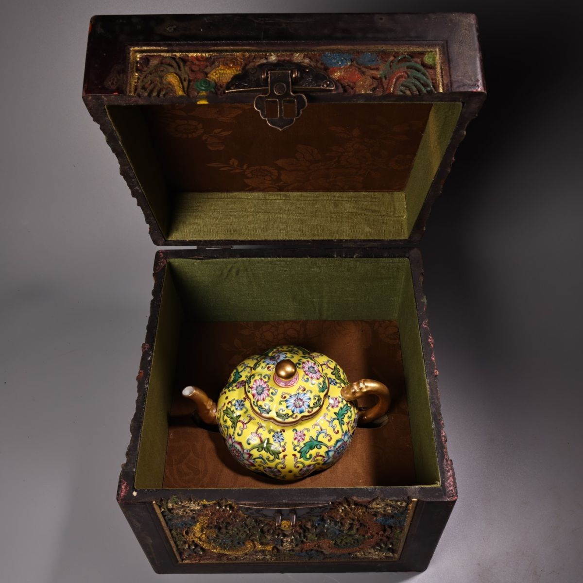 永し 清時代 雍正年製 琺瑯彩塗金 茶壺 彩絵木彫盒 古陶磁器 陶芸 皿 中国陶瓷器 唐瓷 置物擺件 古美術品 古賞物 収集 旧家蔵出 中国唐物