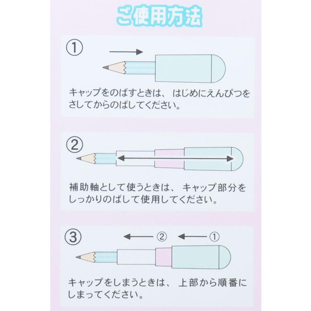 キャップをのばしたら鉛筆補助軸として使える! 毎日が楽しくなるキュートなステーショナリーシリーズこちらは便利な[えんぴつキャップ]鉛筆キャップをのばしたら鉛筆補助軸として使える 補助軸として使わない時はコンパクトになる同シリーズのカワイイ文房具いろいろあるのでお気に入りで揃えちゃおうサイズ:約16x87mm(2本組)素材:ABS