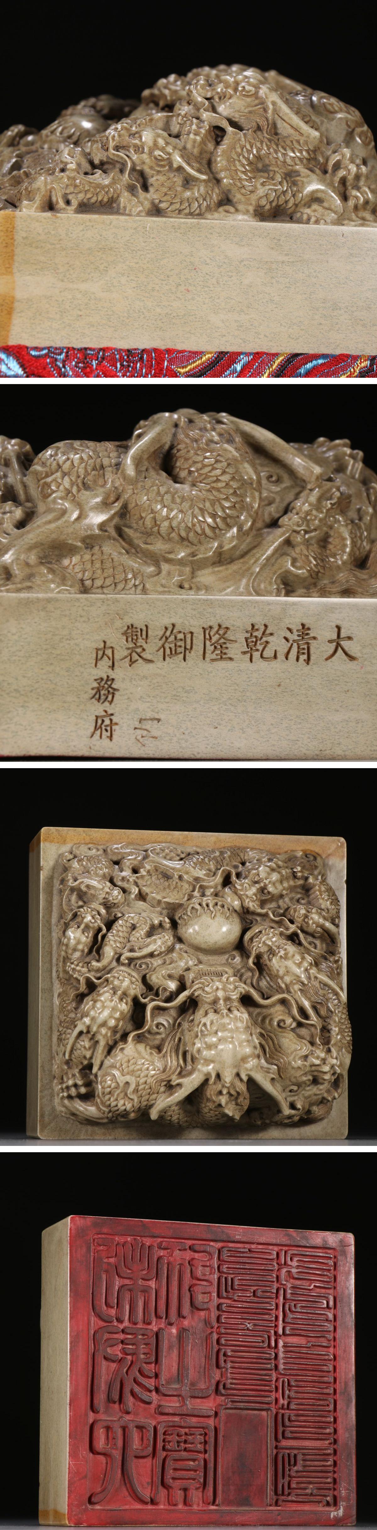 【清】某有名オークション購入 清時代 寿山石 九龍戯珠紋御印 材質保証 当時物保証 古置物 古擺件 古美術 時代コレクション7L10-10BT15