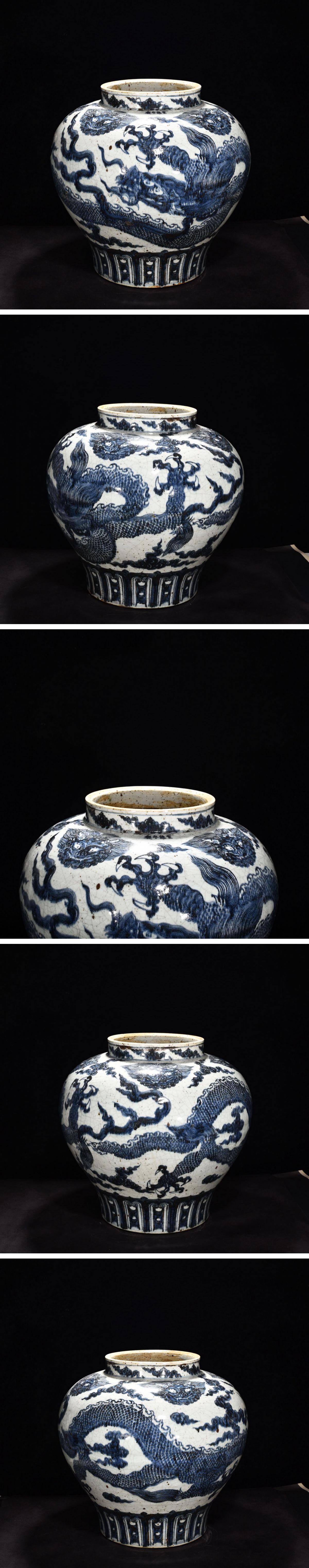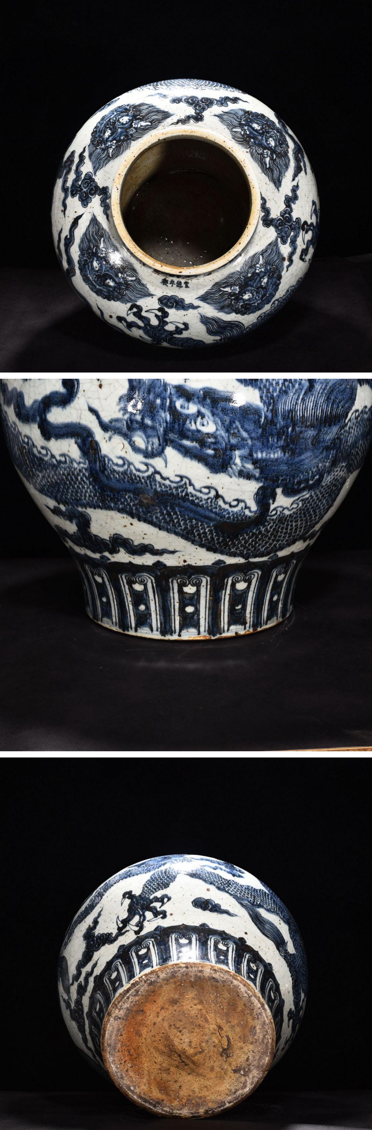 【清】某有名オークション購入 明時代 大明宣徳年製 青花雲龍紋壺 花入 古置物 古擺件 古美術 時代コレクション7L10-BY15