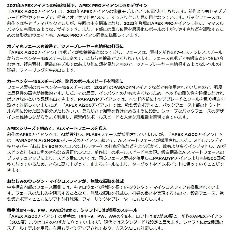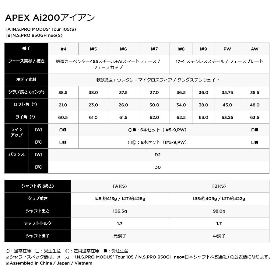 新品 キャロウェイ 2024 エイペックス APEX Ai200 #5-PW 6本 N.S.PRO MODUS3 TOUR 105 (S) 日本仕様 |