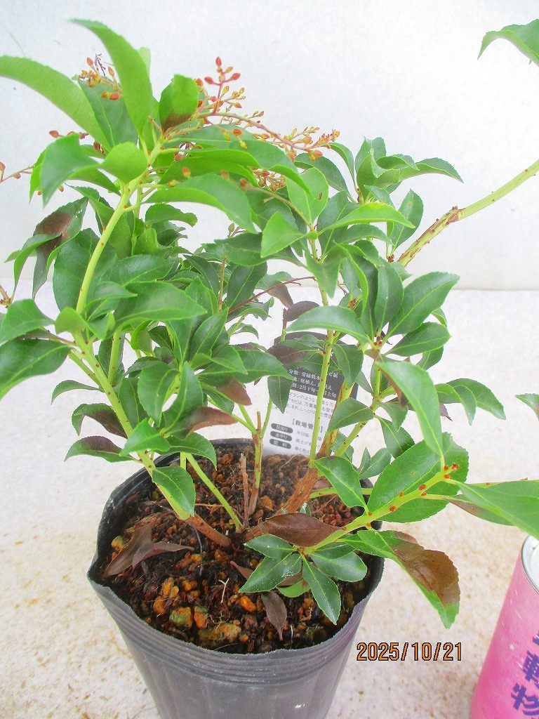 [緑の市場]赤花馬酔木(101917黒ポット)全高:33㎝*同梱包対応「まとめて取引」厳守*80サイズ送料明記 同梱包ご希望は「まとめて取引」でお手続きして下さい。 *同梱包は[緑の市場]のタイトルでの出品商品に限ります。類似画像で他IDの出品にご注意下さい。* 単品(セット品は1組)発送ご希望の際は「まとめて取引」の手続きをしないでください。入札前に必ず下記の「発送方法」に記載の送料を確認してください。 ヤフオクの取引においてメッセージは特に必要ありません。挨拶などを省略できる取引システムですし取引ナビの通知で進行状況が判るので都度の連絡(送金や受け取りのメッセージ)は不要です。配送日時指定や連絡事項のみお知らせください。双方合理的に進めましょう。また、お急ぎの方は入札をご遠慮ください。業務時間内での対応になります(土日祝休業)。 寸法は鉢を含む全高です。(樹高ではありません。) 一緒に撮影しているスケールまたは比較物をご参照ください。 飲料缶は高さ約10㎝、直径約5㎝です。 500mlペットボトルは高さ約21㎝です。 ■画像の様子から経時変化しますので撮影日(画像記載)からの変化はご了承下さい。 *花物・実物は特にご注意下さい。 画像(撮影時)では開花品でも、お届け時は花終わりを想定して下さい。 ◎落札が無い場合は、自動再出品が継続されます。 撮影から2か月経過した場合、どんどん開始価格が下がりますが、商品の劣化も進みますので、 撮影日からの期間経過品はある程度の劣化を想定で入札にご参加下さい。 商品により90日間程度(物によりそれ以上)同じ画像を使用しますので、必ず撮影日をご確認下さい。 |