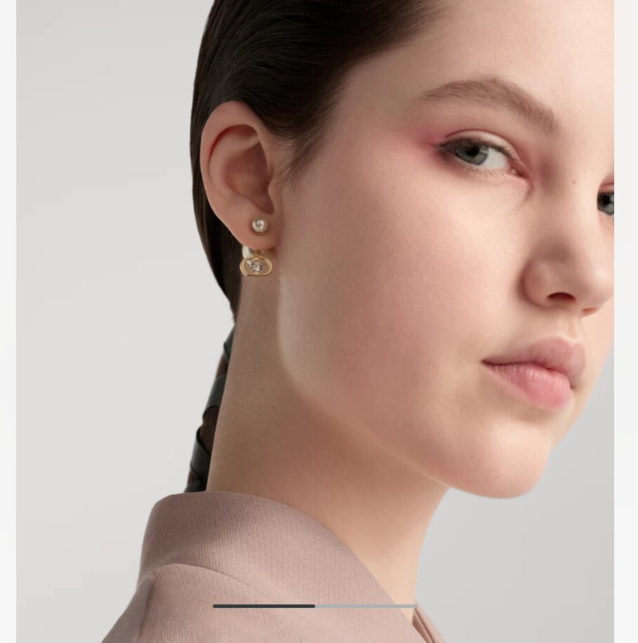 エレガントですっきりとしたデザインの「Dior Tribales (ディオール トライバル)」ピアス。アイコニックなレジンパールにゴールドトーンメタルのCDシグネチャーを組み合わせ、中央にはシルバートーンのクリスタルをあしらいました。「プチ CD ジョリー」の他のアイテムと合わせてお使いいただけるピアスです。
