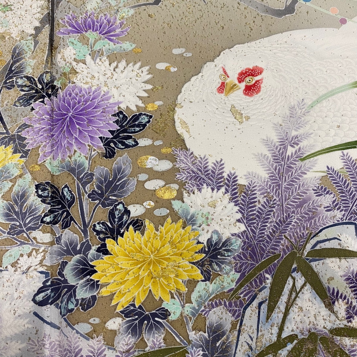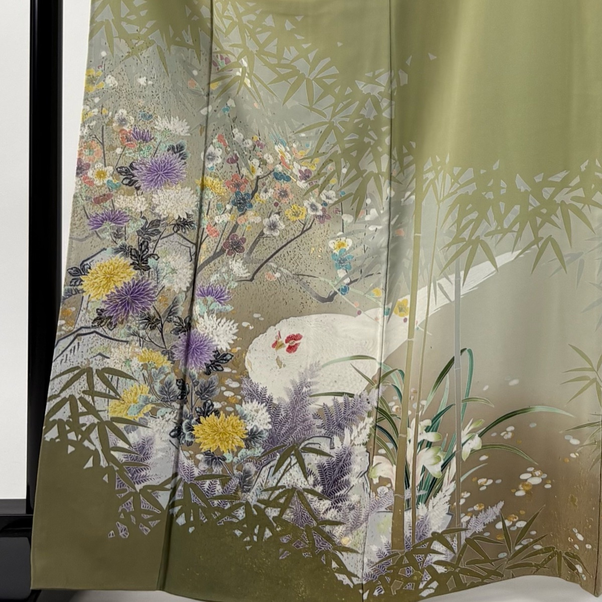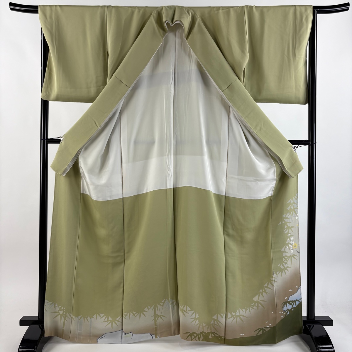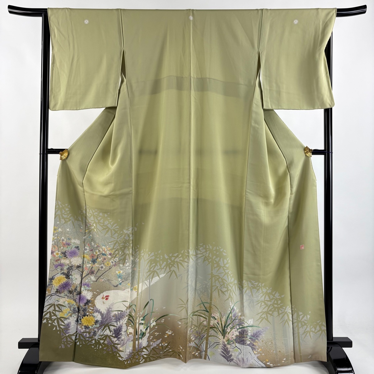 | 色留袖 秀品 落款 草花 鳥 金糸 金銀彩 抹茶色 袷 身丈164.5 裄丈67 M 正絹 【中古】 |