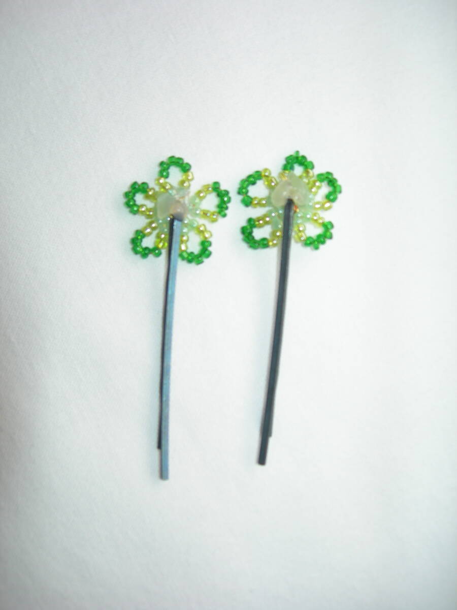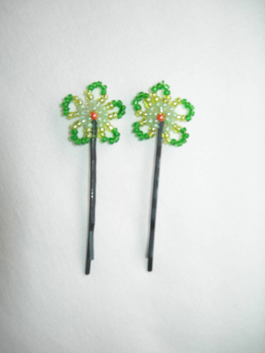 | ビーズ ヘアピン 花(グリーン) ハンドメイド 新品 | |||