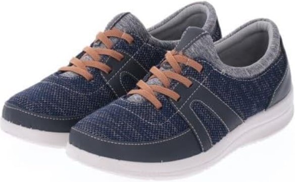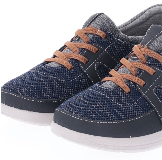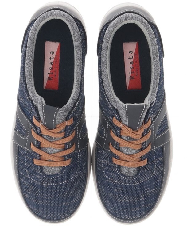 【Risata/リサタ】ゴム紐仕様 幅広軽量スニーカー (ネイビー)
