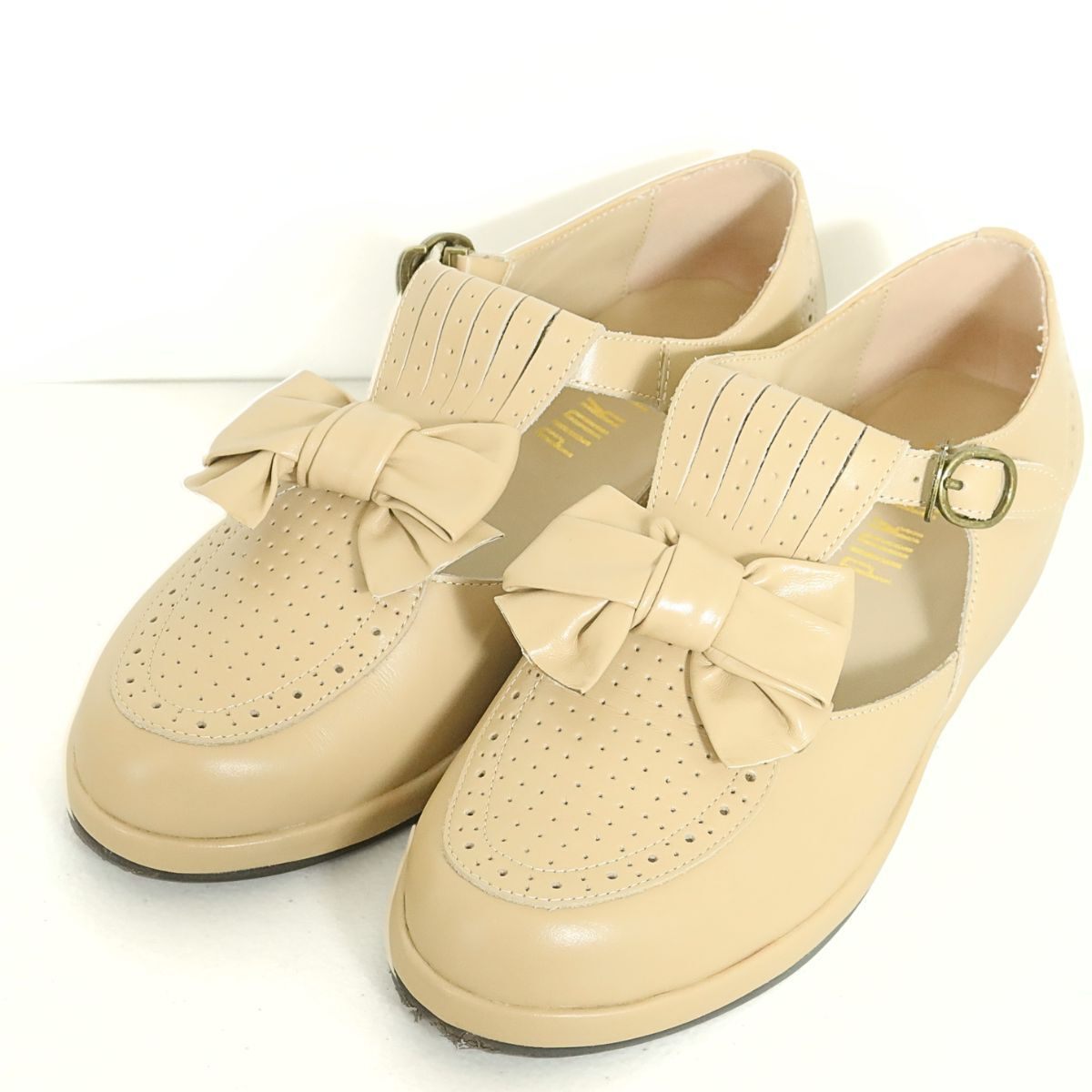 | 商品説明 | 【実寸約】靴底長さ24.5 【サイズ表記】3M 【状態】普通の使用感あるお品物 つま先にスレ感あり 【デザイン】ベージュ系 リボン飾りとパンチングデザインがとっても可愛い! 幅広いコーディネイトにぴったり クラシックで愛らしいメリージェーンシューズです |
