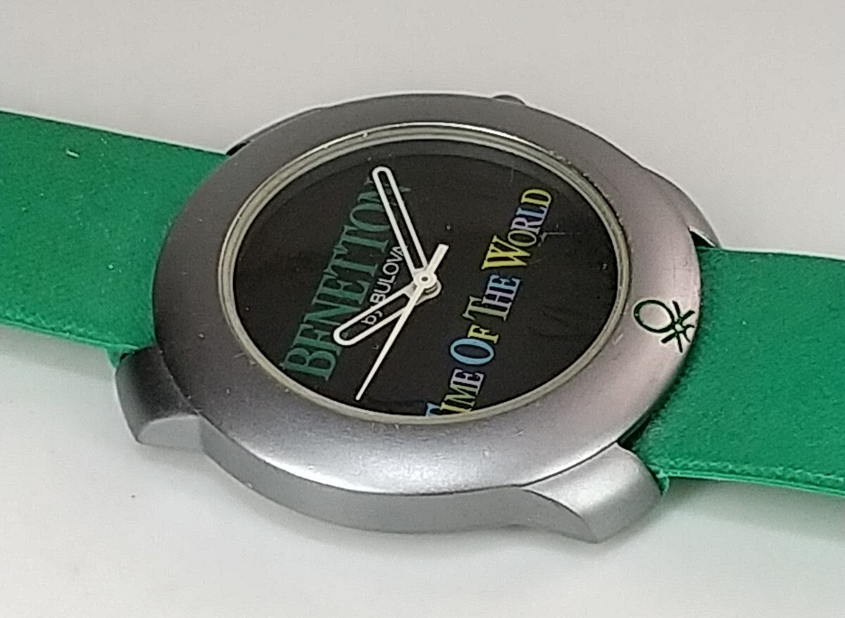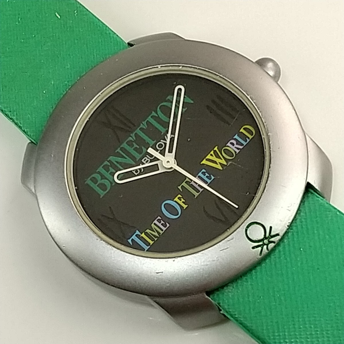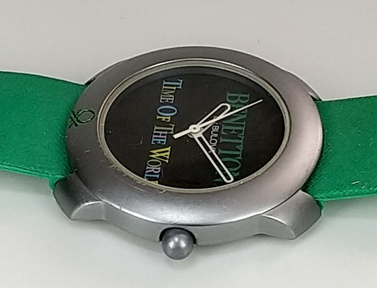 商品名:時計 腕時計 BULOVA benetton by bulova TIME of THE WORLD ブラック盤 純正バンド 電池交換済