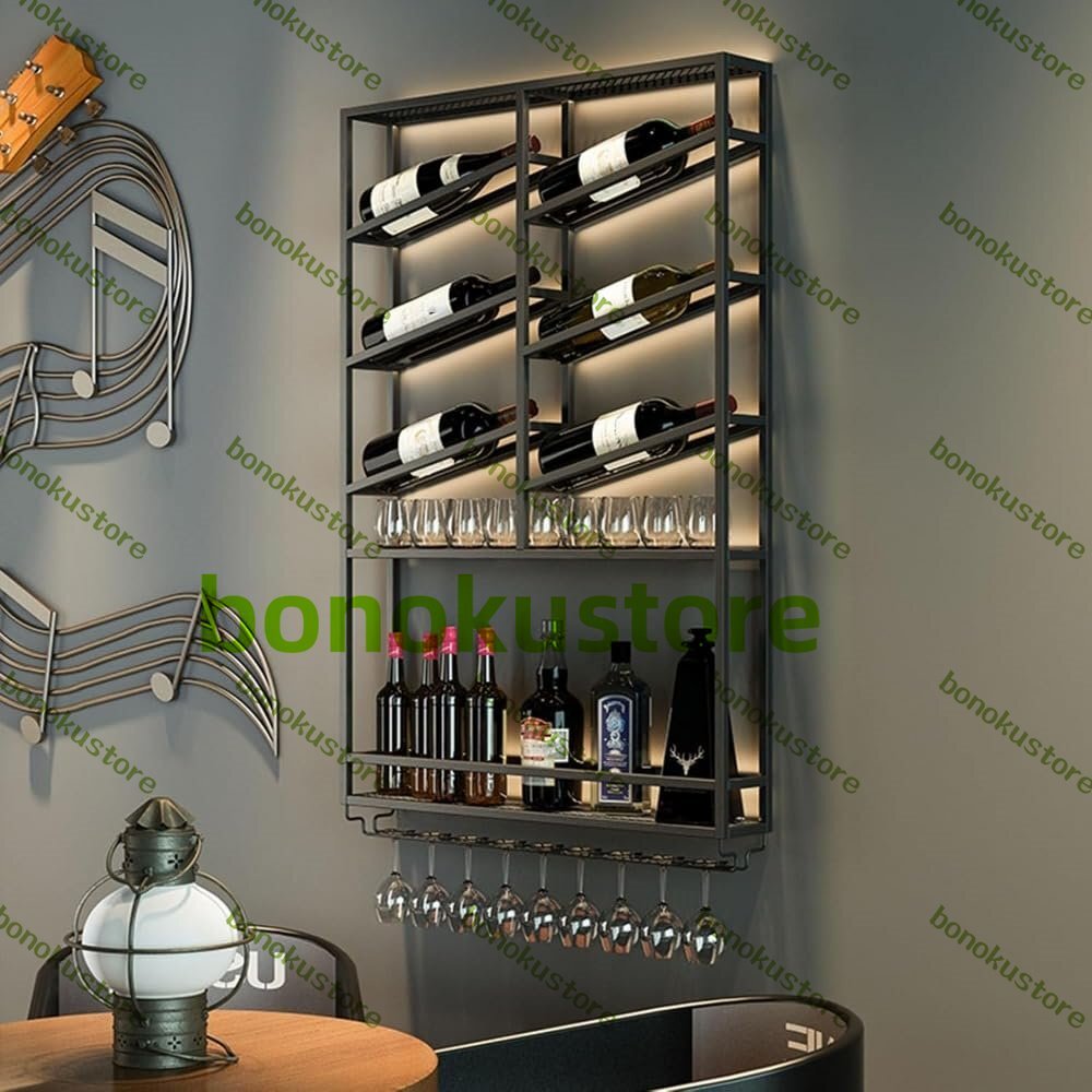 【内蔵 LED ライト スタイリッシュな展示効果】内蔵 LED ライトを備え、ワインディスプレイにモダンな雰囲気を加えます。柔らかなアンビエント光がワインボトルを美しく照らし、洗練された温かみの空間を作り出し、部屋の視覚的魅力を高めます。
