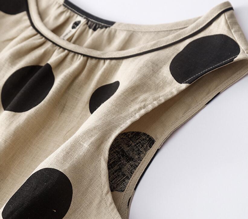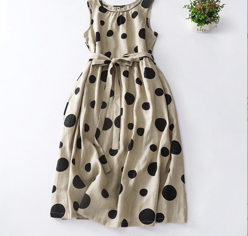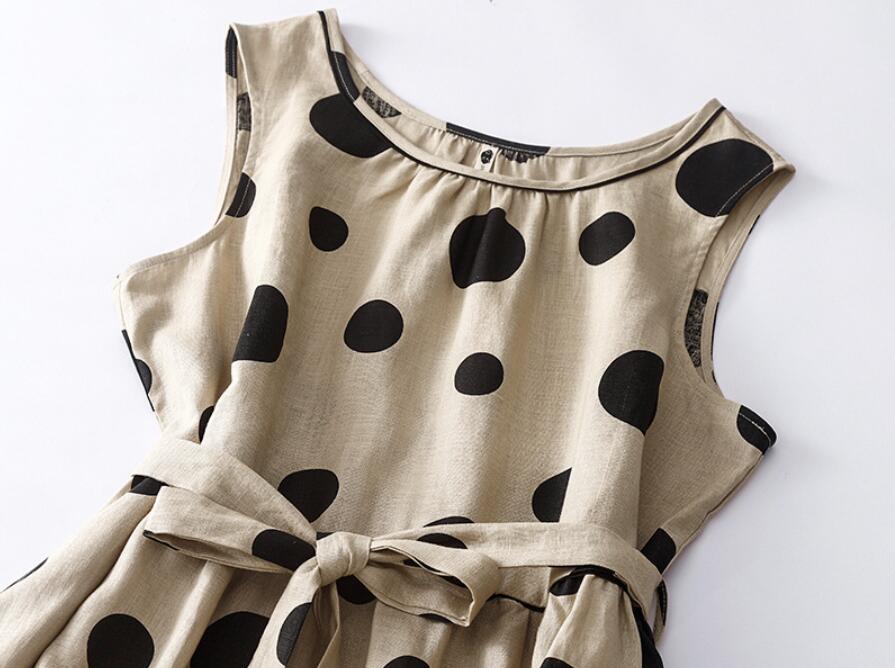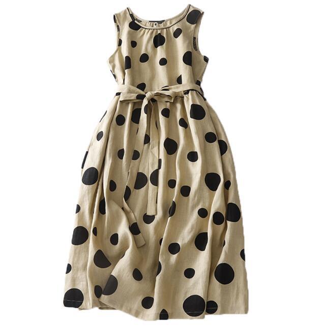 新入荷新品春夏Aラインワンピース カジュアル ゆったり ノースリーブ 大きいサイズ ロングワンピース 水玉柄 綿麻 着痩せ マキシワンピース