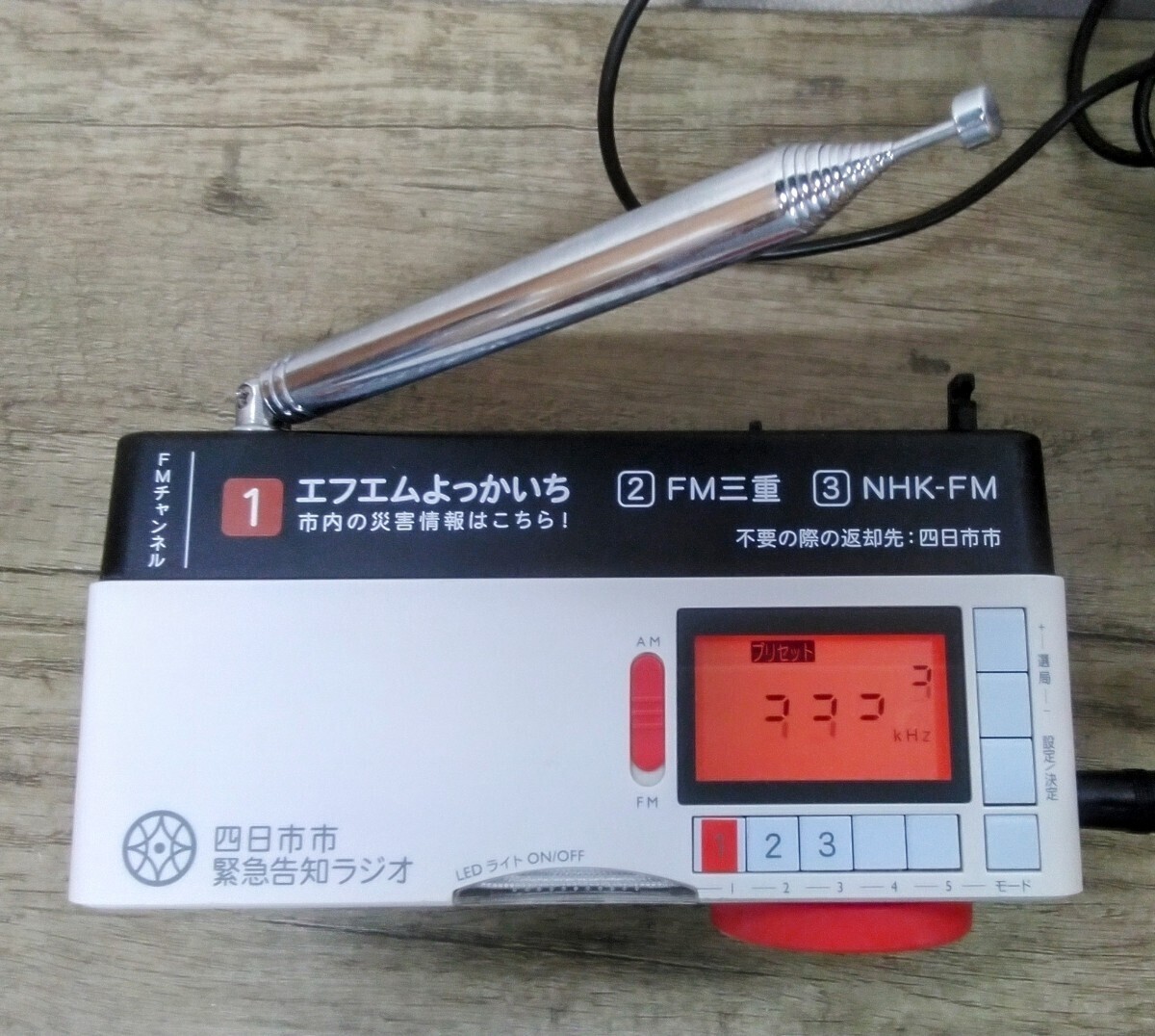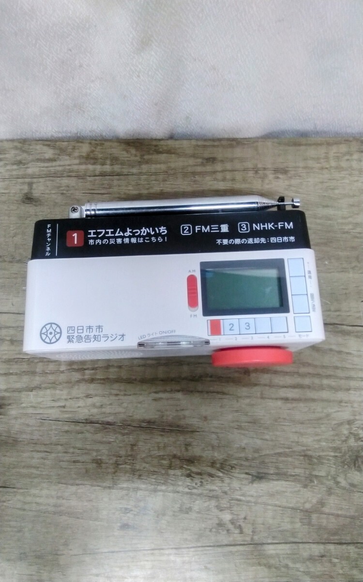 ELECOM 四日市緊急告知ラジオ(防災ラジオ、LRT-ER100D24202)です。