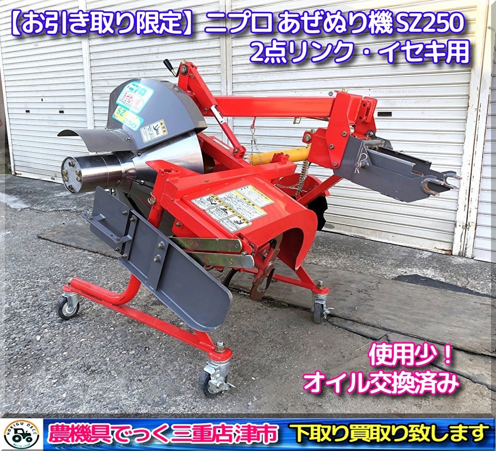 | 使用少!【お引き取り限定】三重県津市 ニプロ あぜぬり機 SZ250 2点リンク イセキ用 11~17馬力 | |||